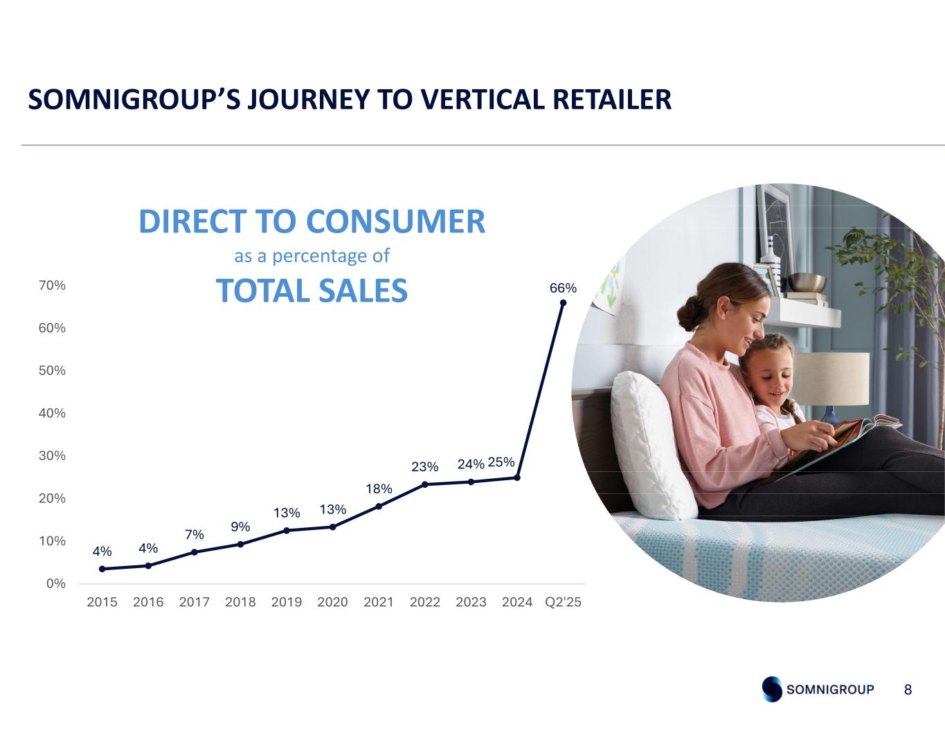 SOMNIGROUP’S JOURNEY TO VERTICAL RETAILER 8 DIRECT TO CONSUMER as a percentage of TOTAL SALES 4% 4% 7% 9% 13% 13% 18% 23% 24% 25% 66% 0% 10% 20% 30% 40% 50% 60% 70% 2015 2016 2017 2018 2019 2020 2021 2022 2023 2024 Q2'25