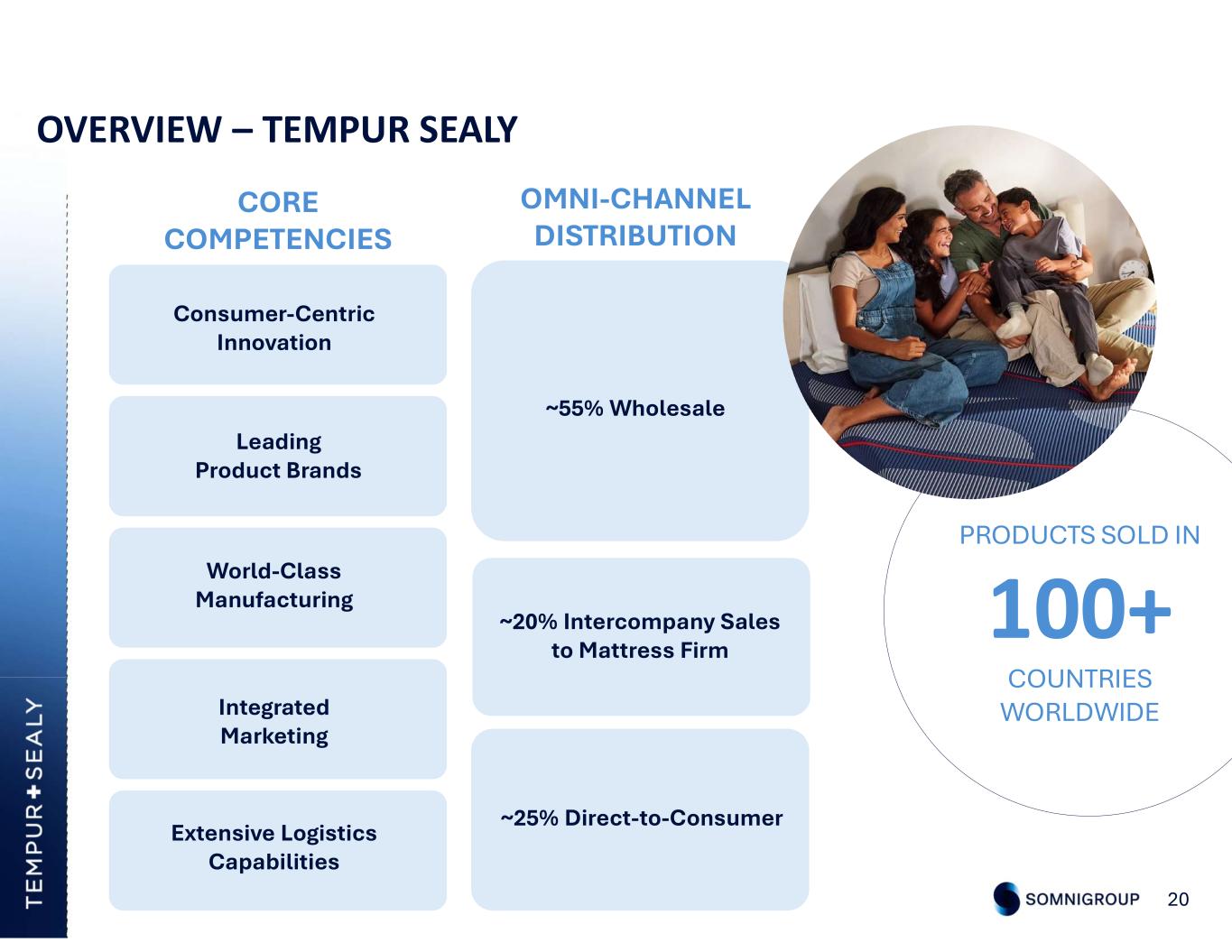 OVERVIEW – TEMPUR SEALY 20 CORE COMPETENCIES OMNI-CHANNEL DISTRIBUTION PRODUCTS SOLD IN 100+ COUNTRIES WORLDWIDE Consumer-Centric Innovation Leading Product Brands World-Class Manufacturing Integrated Marketing Extensive Logistics Capabilities ~55% Wholesale ~25% Direct-to-Consumer ~20% Intercompany Sales to Mattress Firm