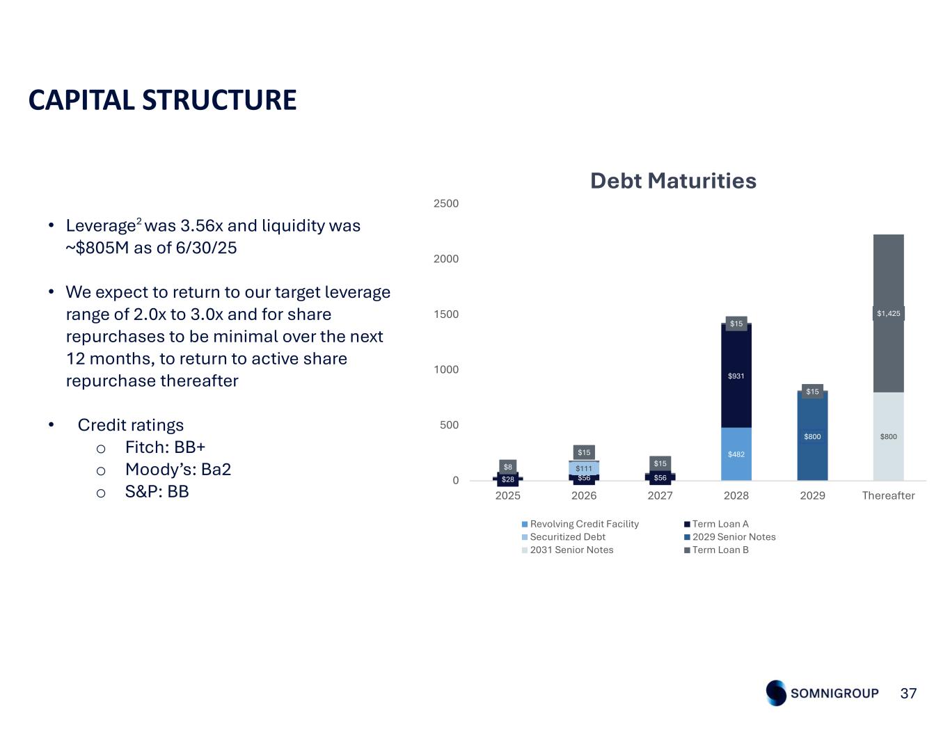 $0 $200 $400 $600 $800 2021 2022 2023 2024 TTM 2Q'25 Full-Year Operating Cash Flow $0 $200 $400 $600 $800 $1,000 $1,200 2021 2022 2023 2024 TTM 2Q'25 Full-Year Adjusted EBITDA2 STRONG BALANCE SHEET & CASH FLOW 36 1.50x 2.00x 2.50x 3.00x 3.50x 4Q20 4Q21 4Q22 4Q23 4Q24 4Q25E Leverage2 Target Range Leverage