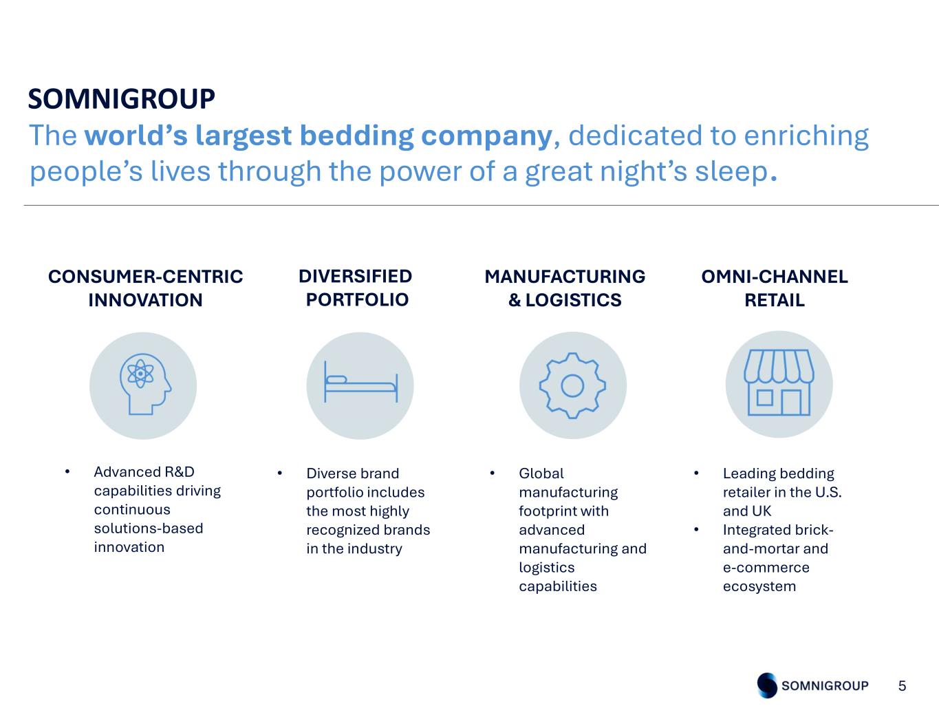 High-level strategic direction • Corporate governance • Capital allocation Tactical go-to-market strategy • Operational excellence • Passionate customer service SOMNIGROUP’S STRUCTURE 4