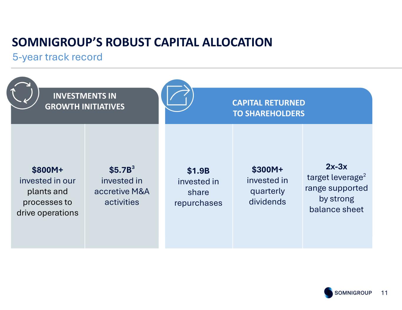 SOMNIGROUP’S ROBUST CAPITAL ALLOCATION 11 INVESTMENTS IN GROWTH INITIATIVES CAPITAL RETURNED TO SHAREHOLDERS $800M+ invested in our plants and processes to drive operations $5.7B3 invested in accretive M&A activities $1.9B invested in share repurchases $300M+ invested in quarterly dividends 2x-3x target leverage2 range supported by strong balance sheet 5-year track record
