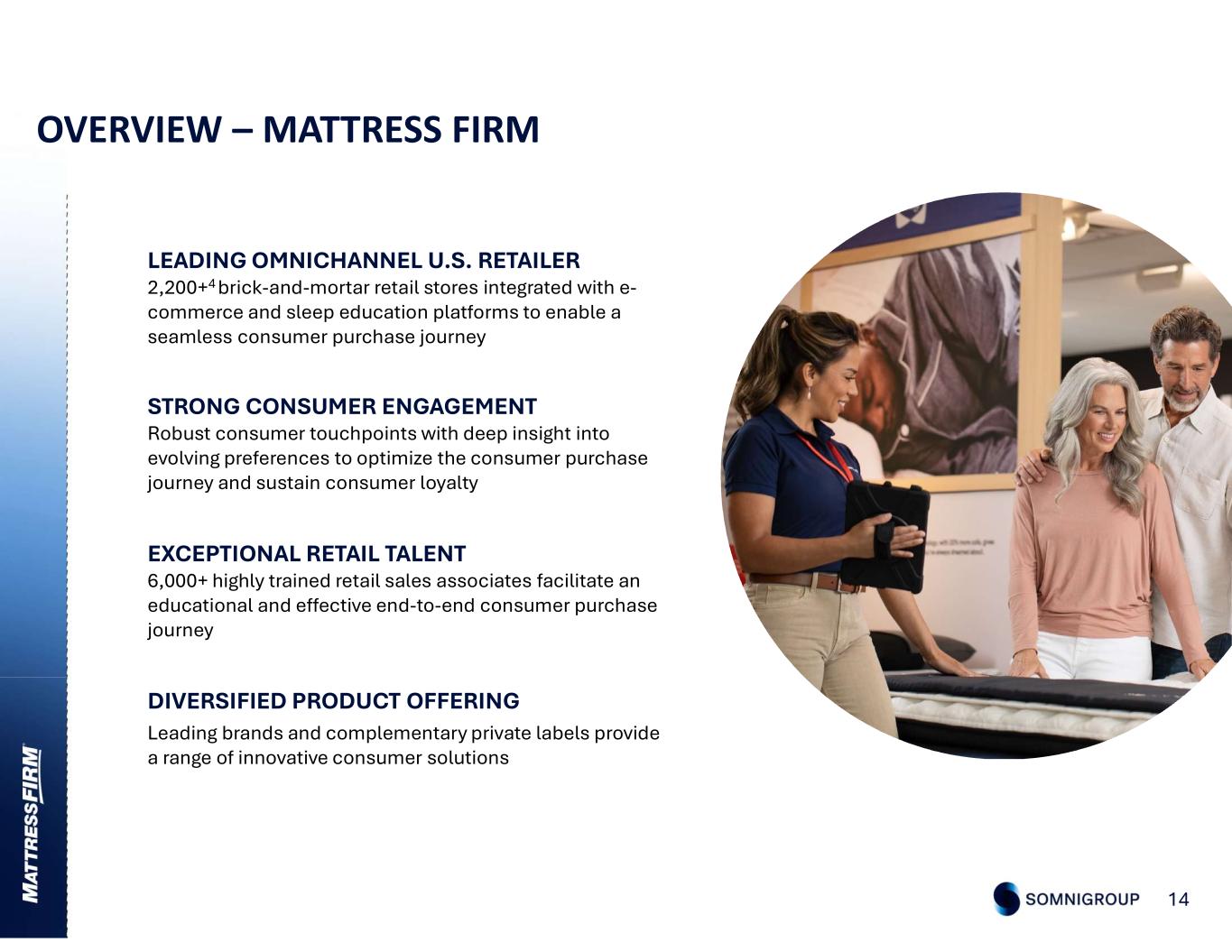 In February 2025, the Company was reimagined, and Somnigroup International Inc. was founded, reflecting the transformative nature of the Mattress Firm acquisition. Somnigroup provides sleep solutions with a portfolio of outstanding businesses with iconic brands. SOMN = sleep OMNI = omnichannel GROUP = company comprised of multiple subsidiaries enriching people’s lives through the power of a good night’s sleep 3 ABOUT SOMNIGROUP