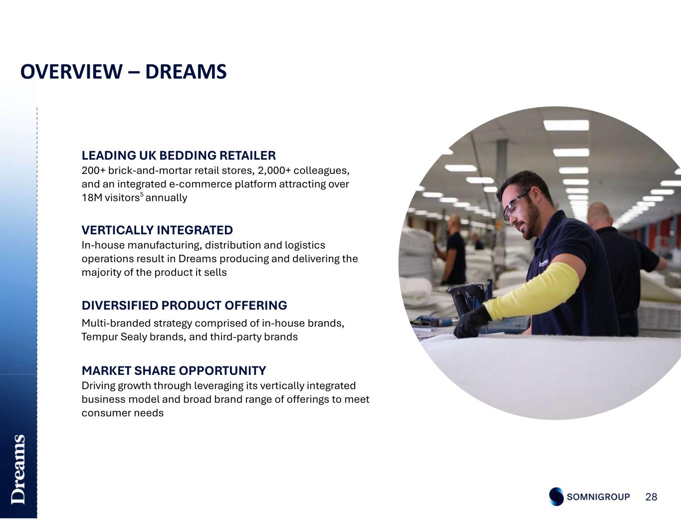 DIVERSIFIED PRODUCT OFFERING Multi-branded strategy comprised of in-house brands, Tempur Sealy brands, and third-party brands OVERVIEW – DREAMS 28 LEADING UK BEDDING RETAILER 200+ brick-and-mortar retail stores, 2,000+ colleagues, and an integrated e-commerce platform attracting over 18M visitors5 annually VERTICALLY INTEGRATED In-house manufacturing, distribution and logistics operations result in Dreams producing and delivering the majority of the product it sells MARKET SHARE OPPORTUNITY Driving growth through leveraging its vertically integrated business model and broad brand range of offerings to meet consumer needs