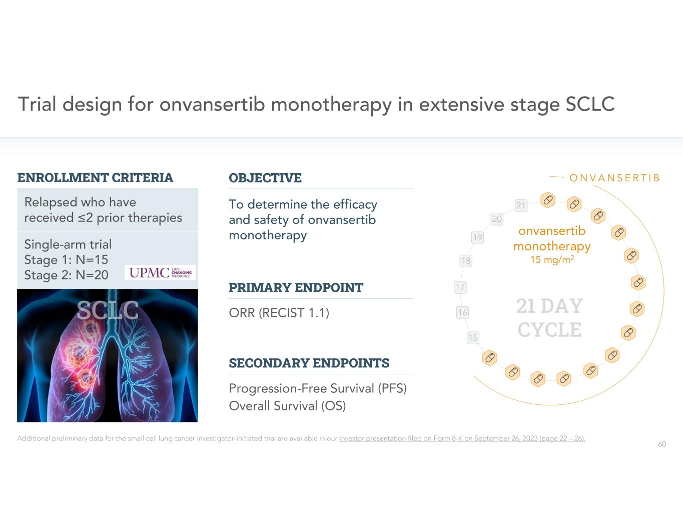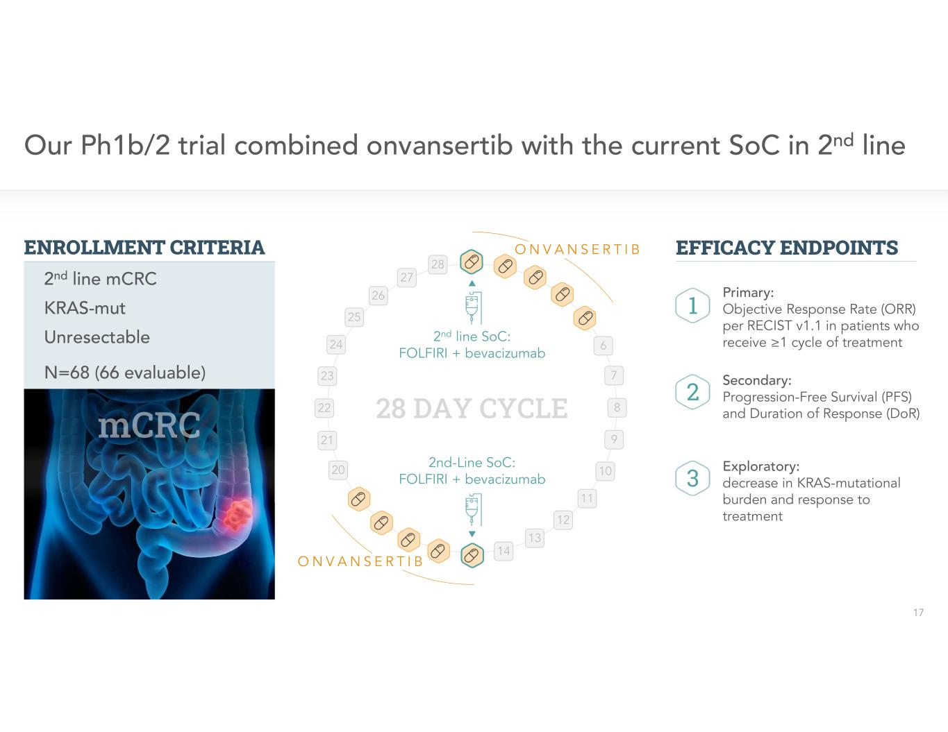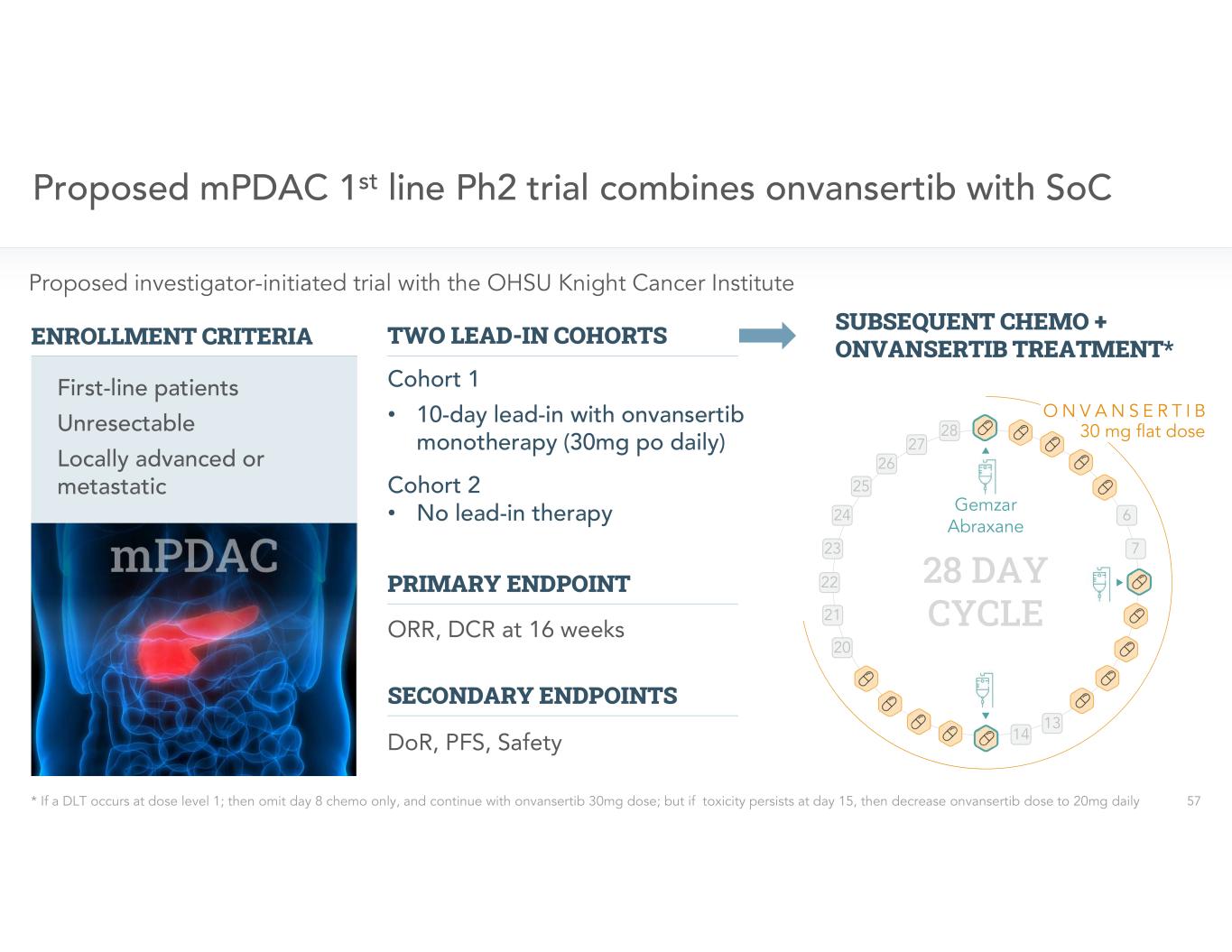 ENROLLMENT CRITERIA 28 DAY CYCLE TWO LEAD-IN COHORTS SUBSEQUENT CHEMO + ONVANSERTIB TREATMENT* • • PRIMARY ENDPOINT SECONDARY ENDPOINTS