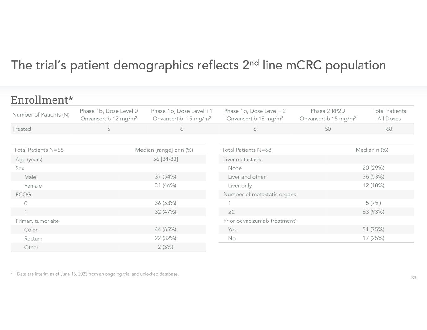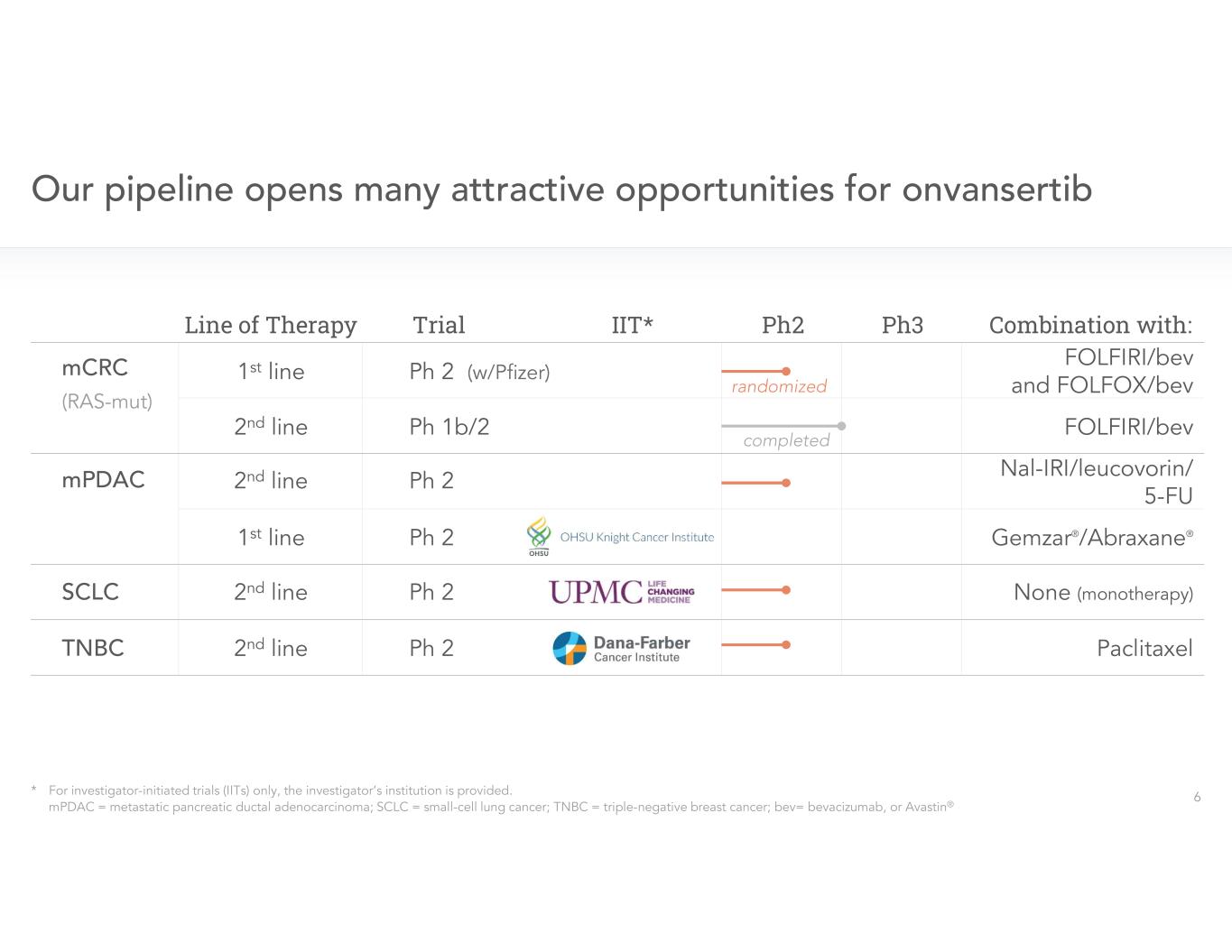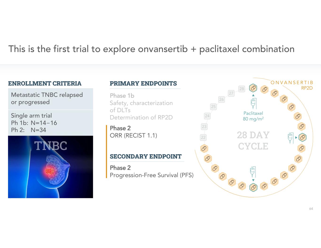 ENROLLMENT CRITERIA 28 DAY CYCLE TWO LEAD-IN COHORTS SUBSEQUENT CHEMO + ONVANSERTIB TREATMENT* • • PRIMARY ENDPOINT SECONDARY ENDPOINTS