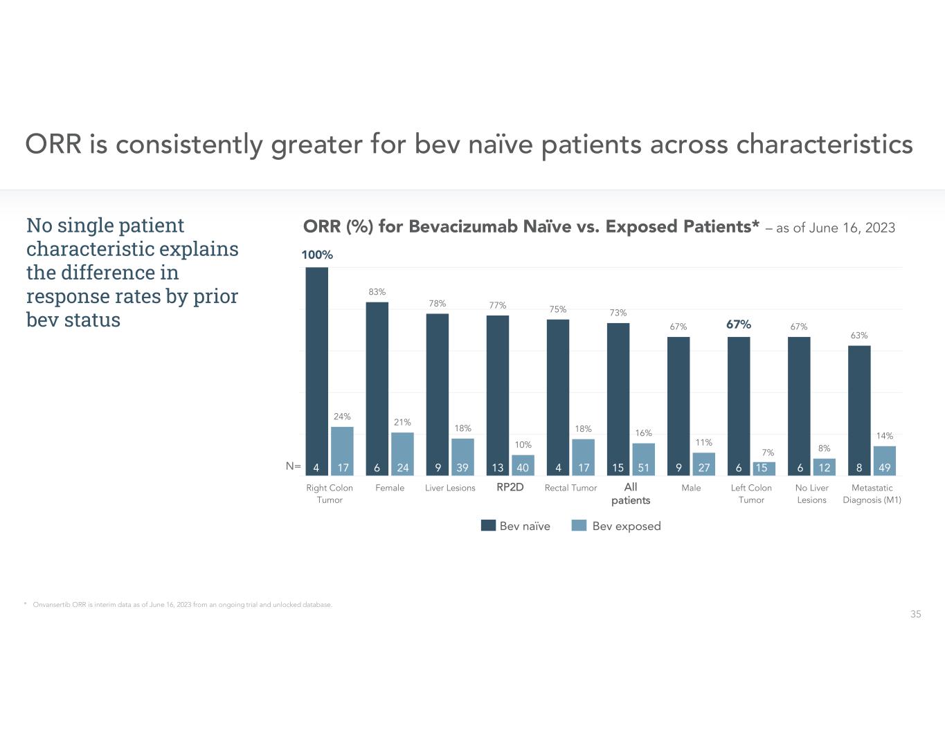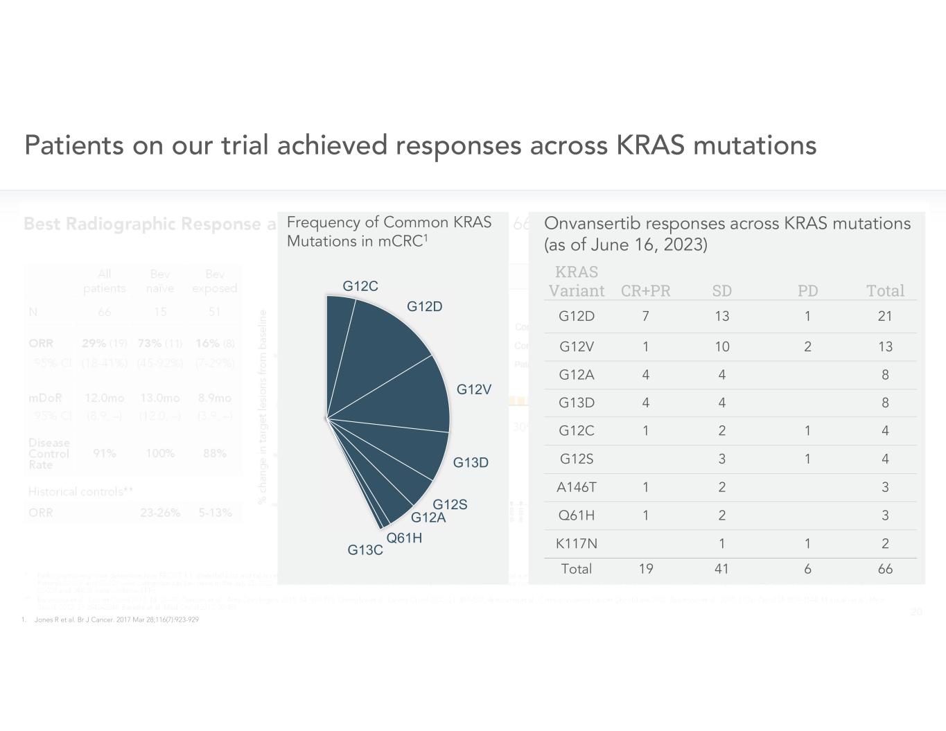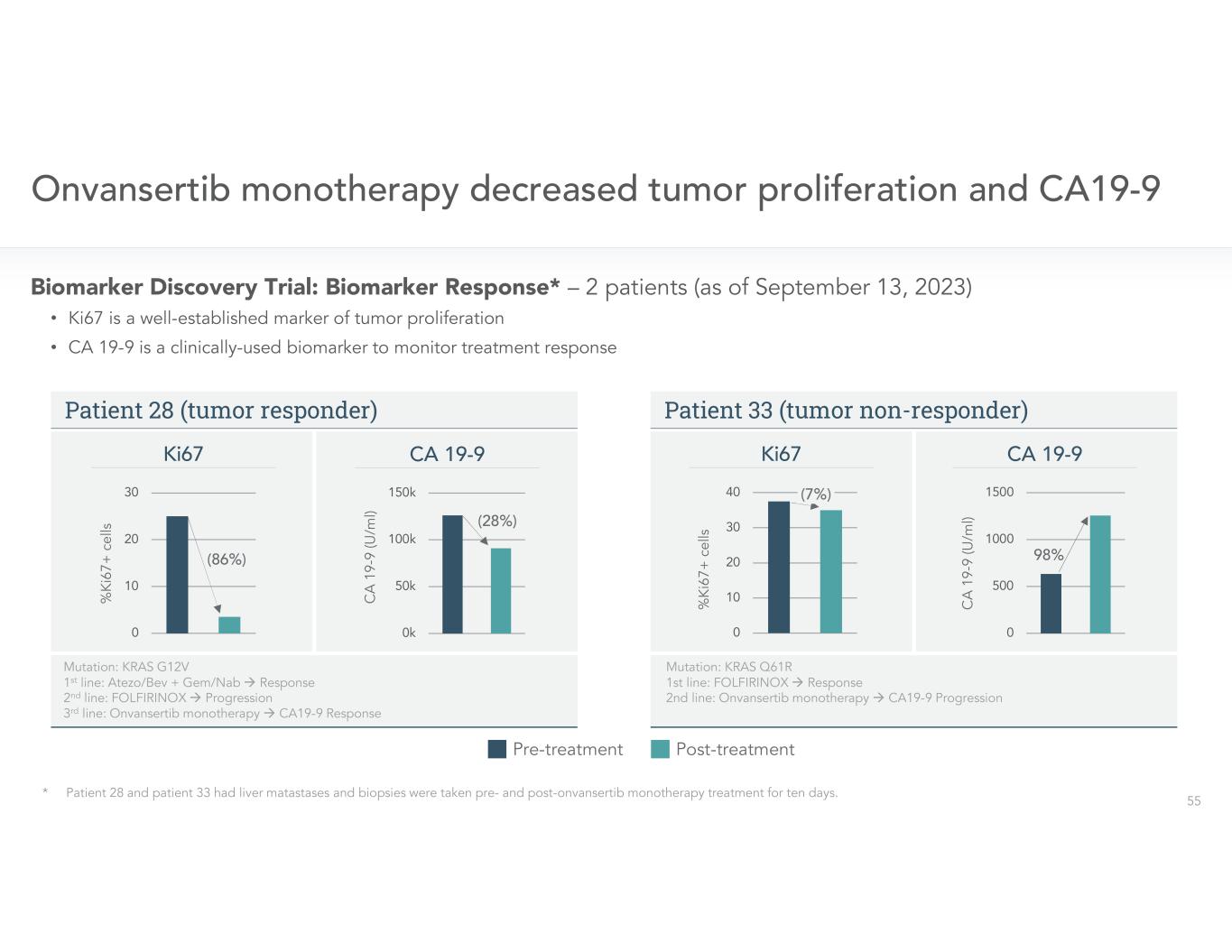First-in-Class PLK1 inhibitor • Onvansertib • FDA • FDA Robust clinical data in 2L KRAS-mut mCRC • 73% ~25% • 15 month ~8 month Pfizer • Pfizer • Pfizer We expect clinical data from our 1st line RAS-mutated mCRC trial in mid-2024