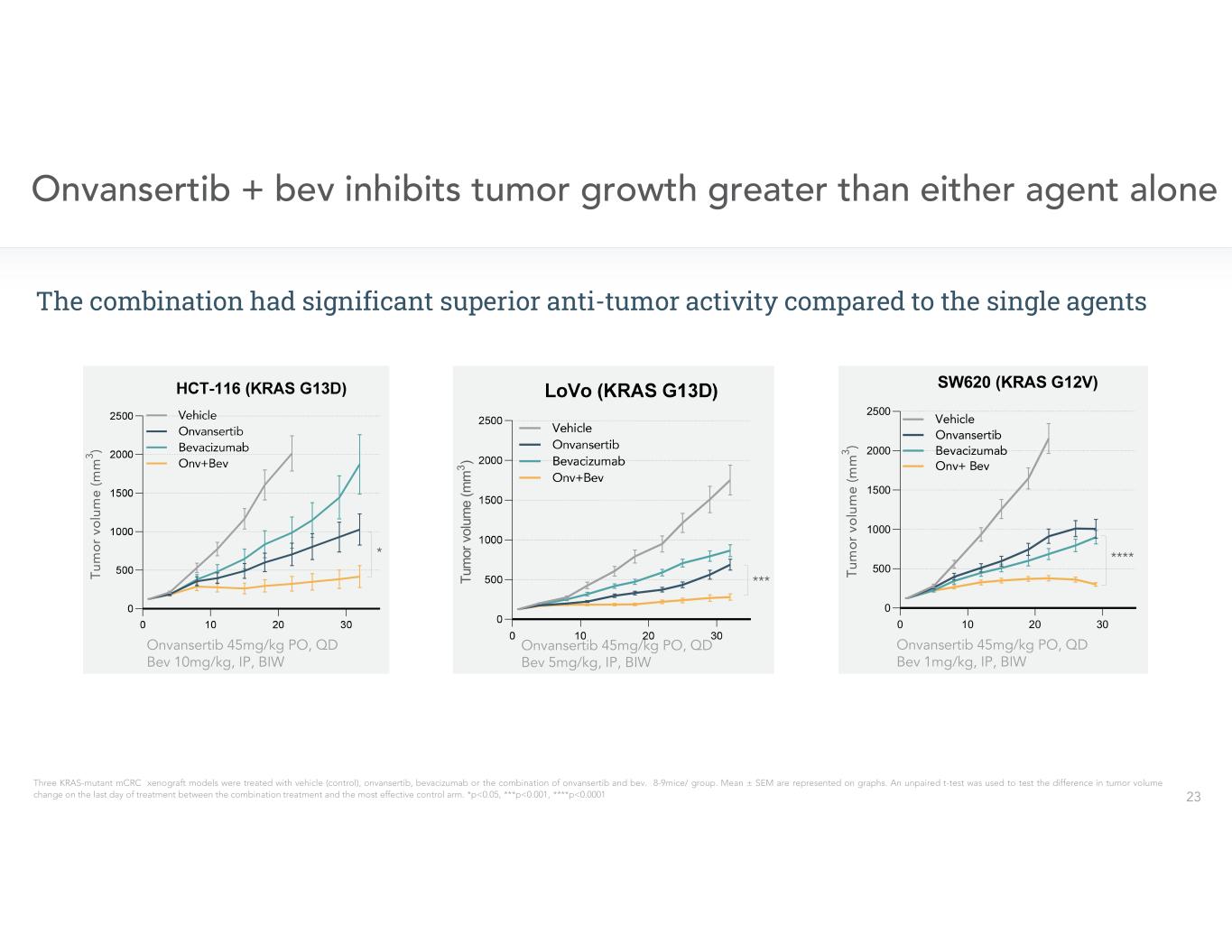 T um or v ol um e (m m 3 ) 0 10 20 30 0 500 1000 1500 2000 2500 SW620 (KRAS G12V) The combination had significant superior anti-tumor activity compared to the single agents