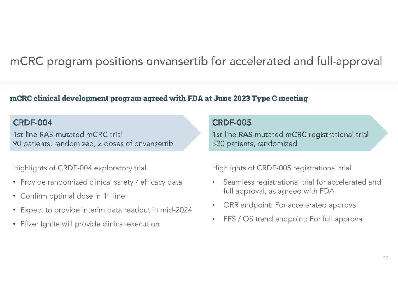 mCRC clinical development program agreed with FDA at June 2023 Type C meeting • • • • • • •