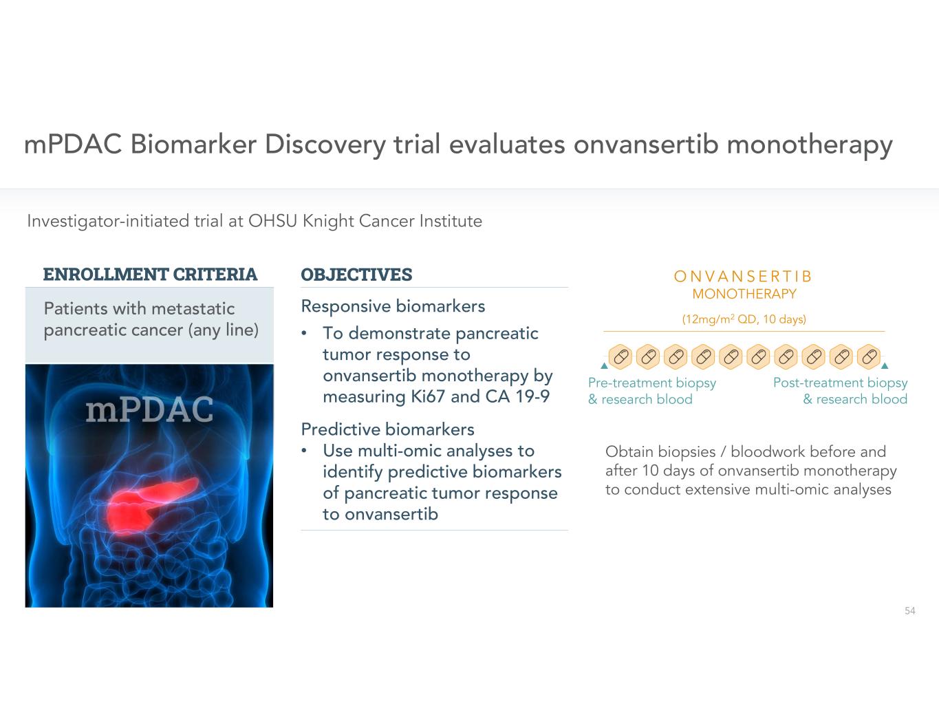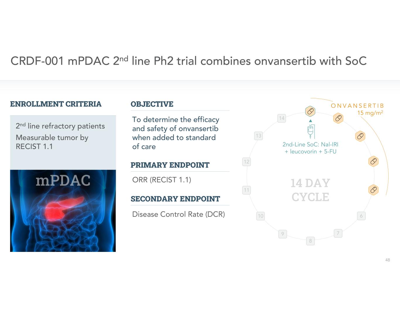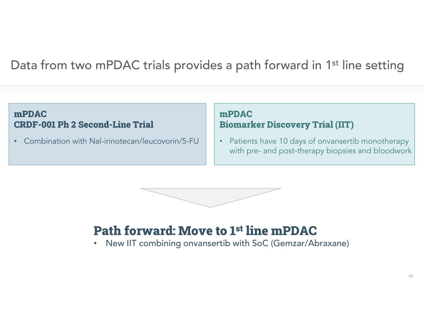 mPDAC CRDF-001 Ph 2 Second-Line Trial • mPDAC Biomarker Discovery Trial (IIT) • Path forward: Move to 1st line mPDAC •