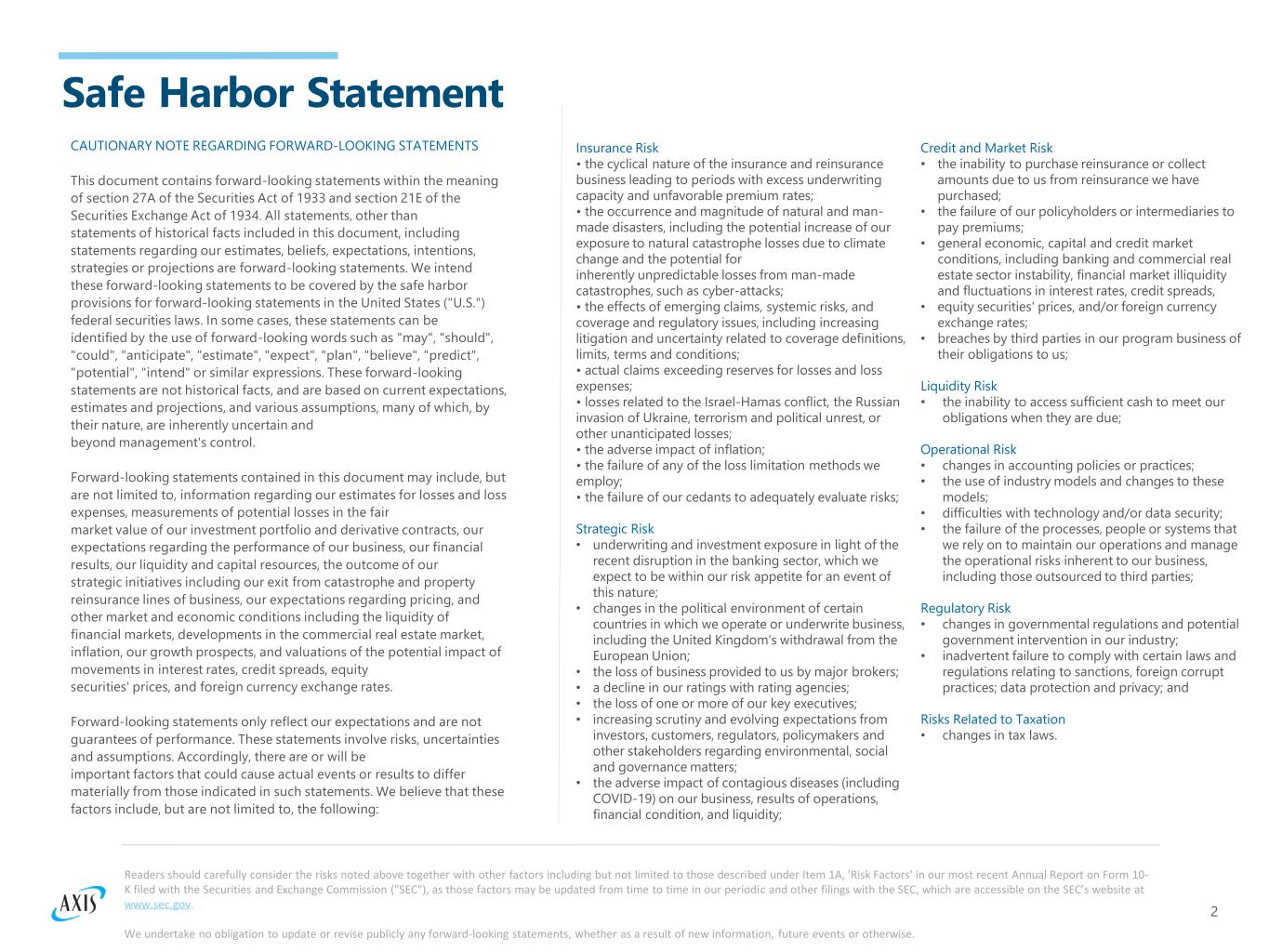 1 2023 Fourth Quarter AXIS Capital Investor Presentation