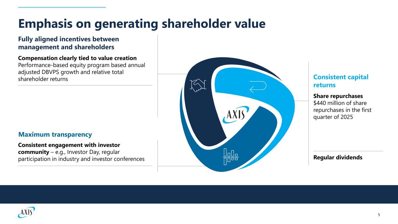 4 AXIS Aspiration Be the leading Specialty underwriter, generating consistent top-quartile diluted book value per common share (“DBVPS”) growth for shareholders