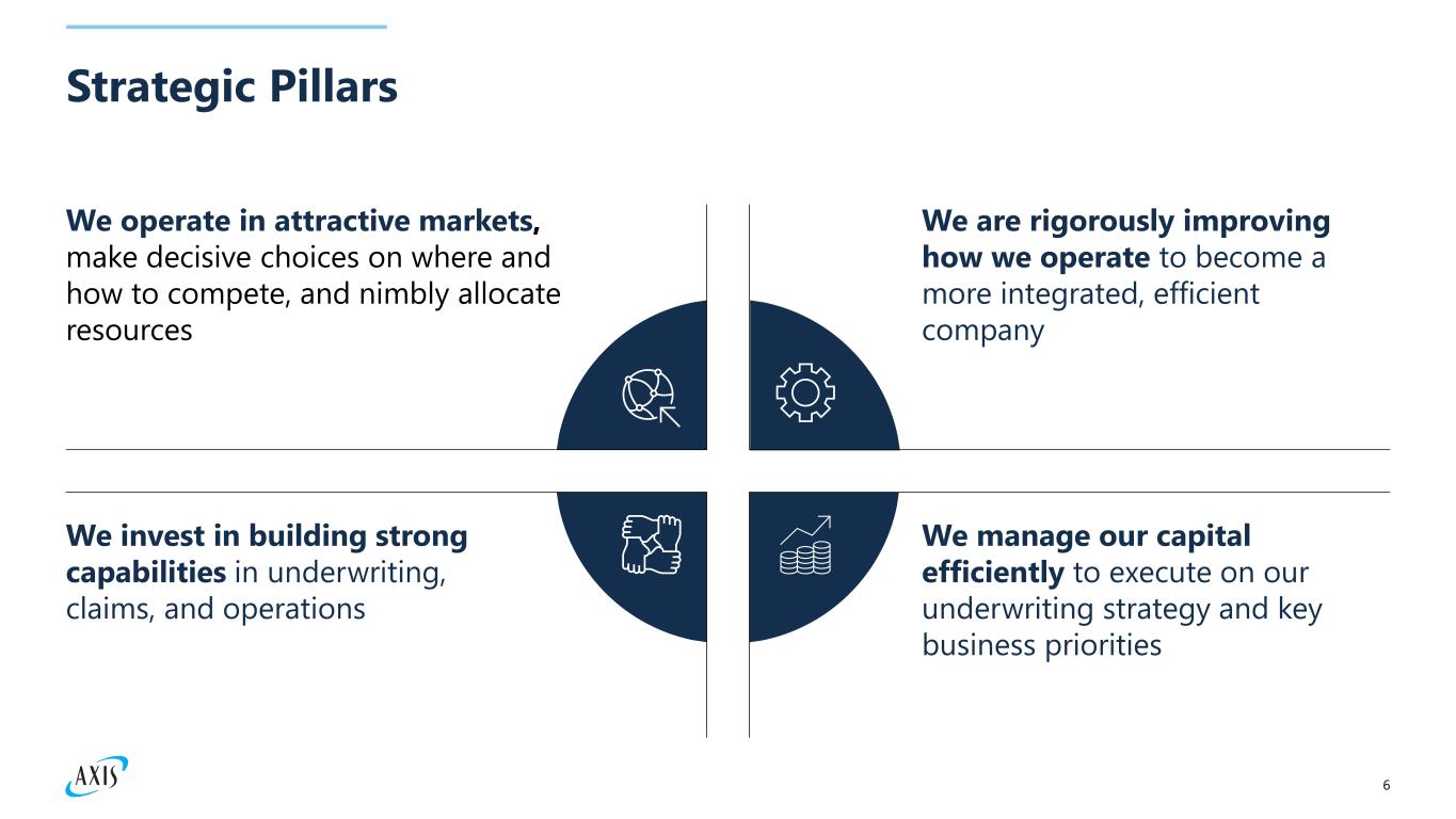 6 Strategic Pillars We operate in attractive markets, make decisive choices on where and how to compete, and nimbly allocate resources We invest in building strong capabilities in underwriting, claims, and operations We are rigorously improving how we operate to become a more integrated, efficient company We manage our capital efficiently to execute on our underwriting strategy and key business priorities
