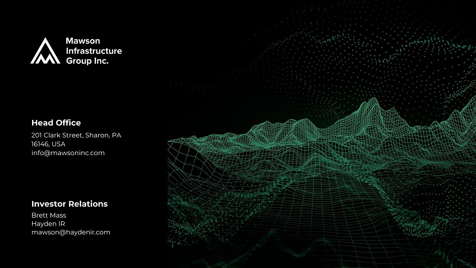 FY2022 Investor Presentation 201 Clark Street, Sharon, PA 16146, USA info@mawsoninc.com Brett Mass Hayden IR mawson@haydenir.com Investor Relations Head Office