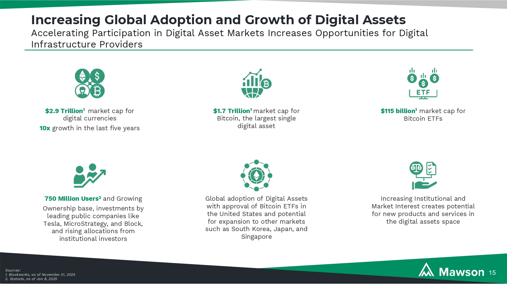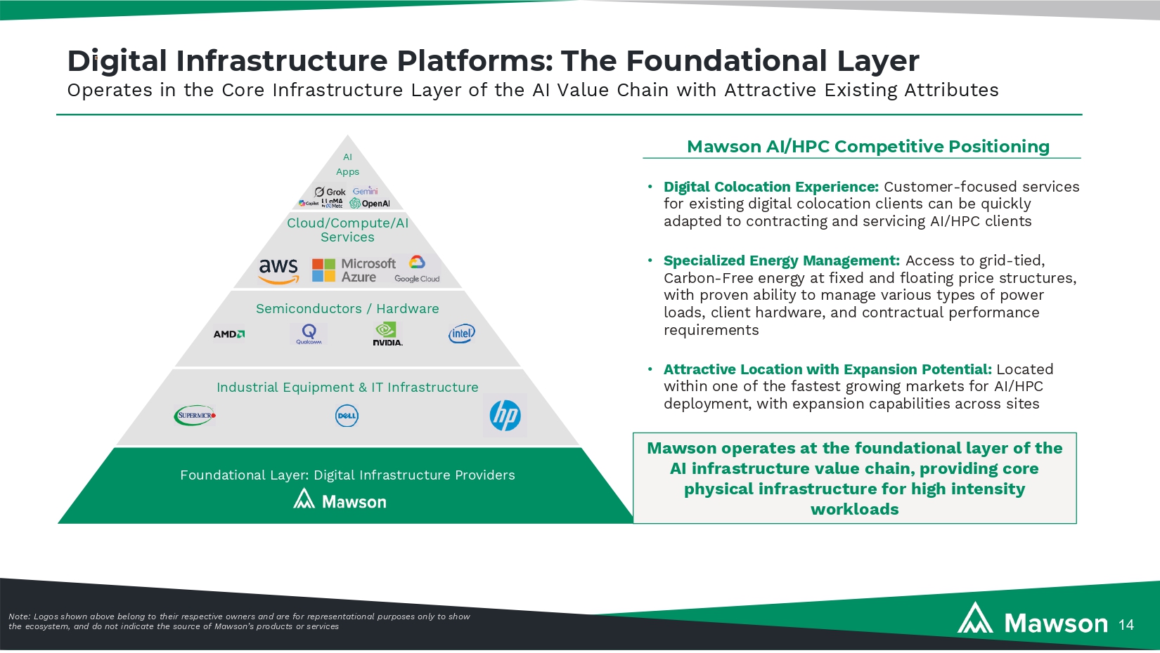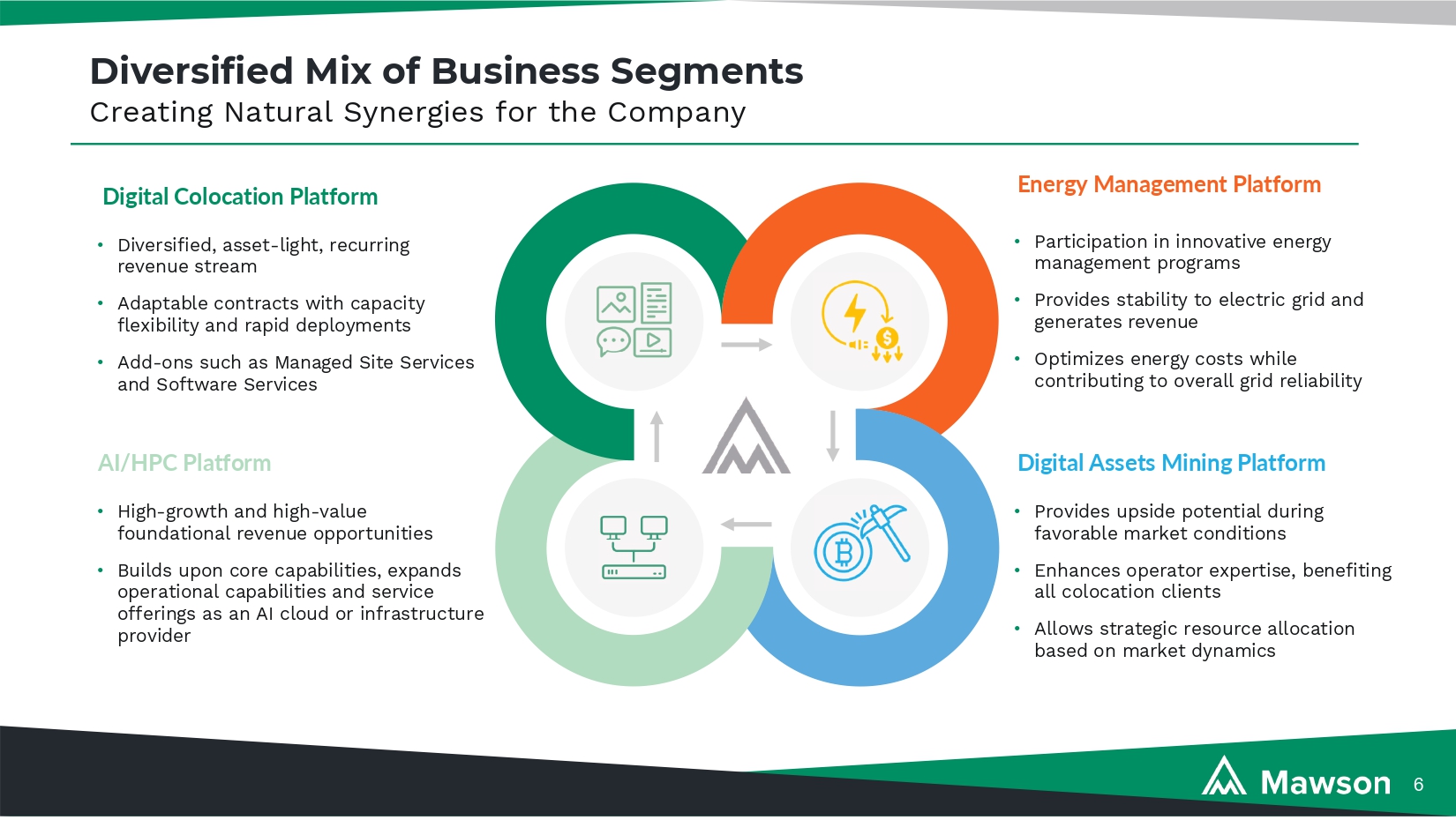 Digital Infrastructure Platforms for AI, HPC and Digital Assets Corporate Headquarters 950 Railroad Avenue, Midland PA 15059, USA Investor Relations IR@mawsoninc.com Media Relations mediarelations@mawsoninc.com NASDAQ: MIGI For more information and updates, visit our website: https://www.mawsoninc.com