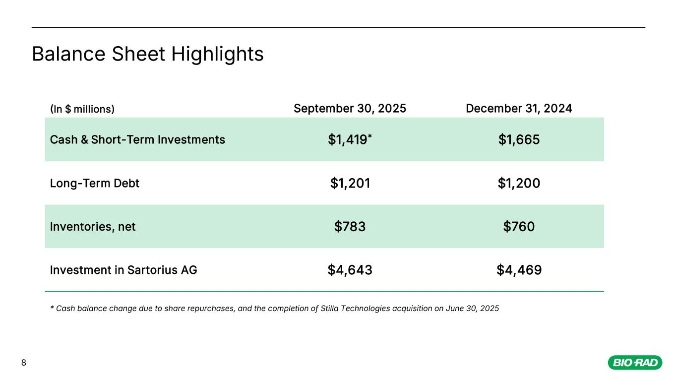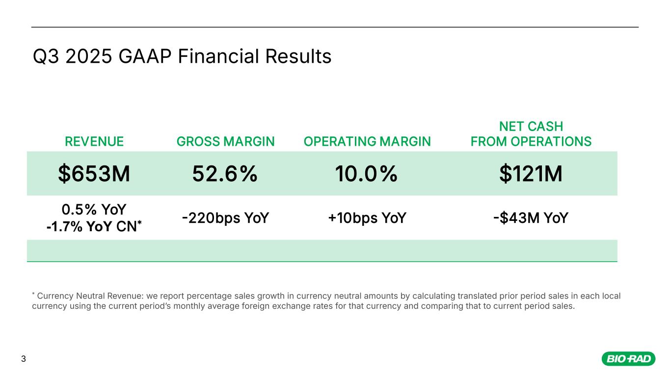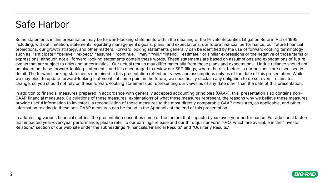 October 29, 2025 Third Quarter 2025 Financial Results Bio-Rad Laboratories, Inc.