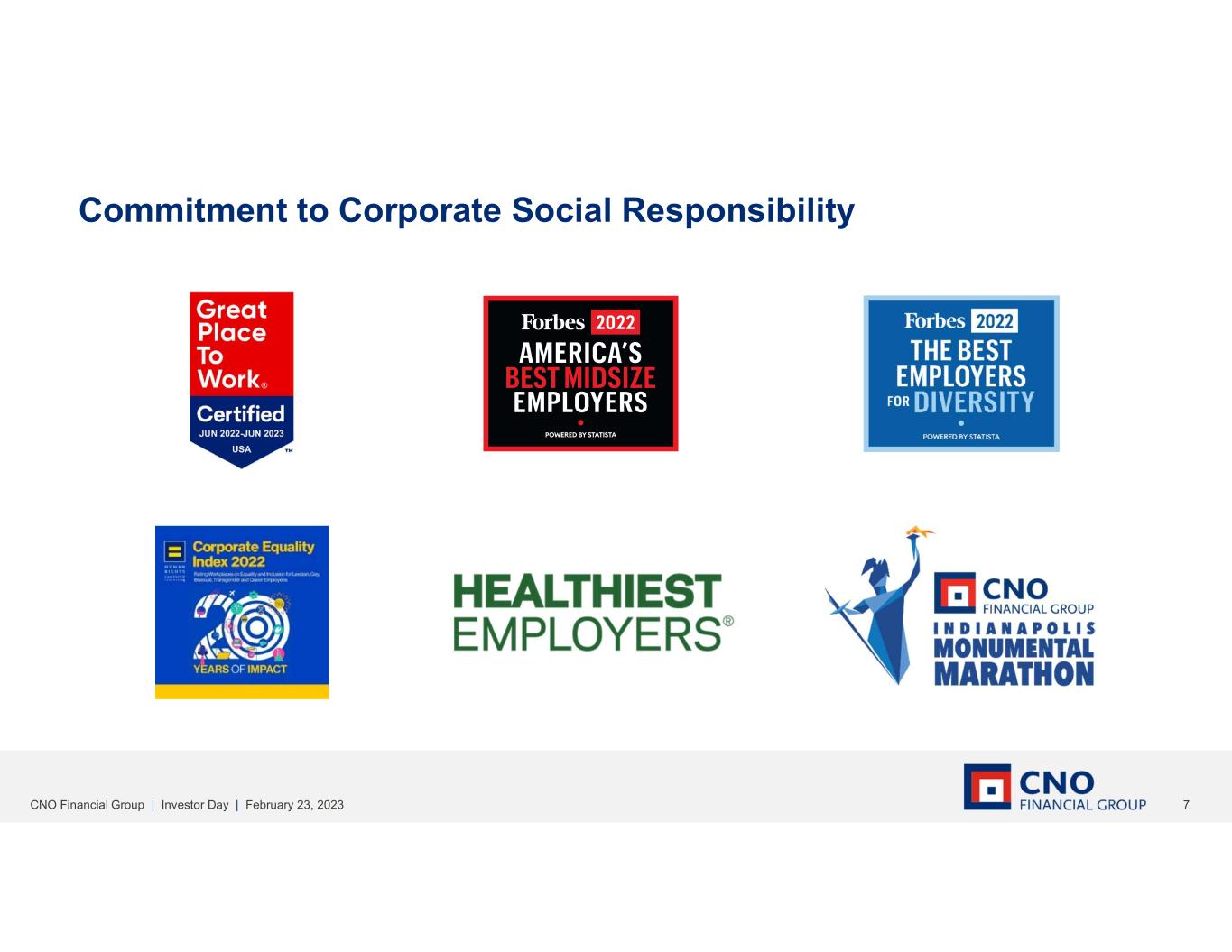 CNO Financial Group | Investor Day | February 23, 2023 7 Commitment to Corporate Social Responsibility