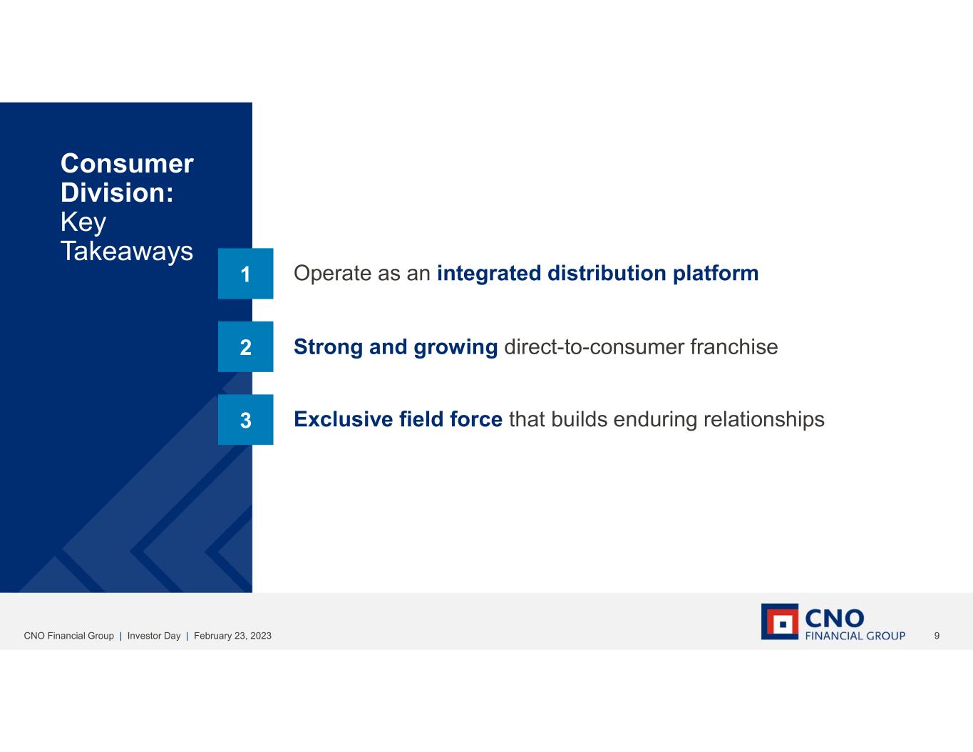 CNO Financial Group | Investor Day | February 23, 2023 8 Consumer Division Scott Goldberg President, Consumer Division