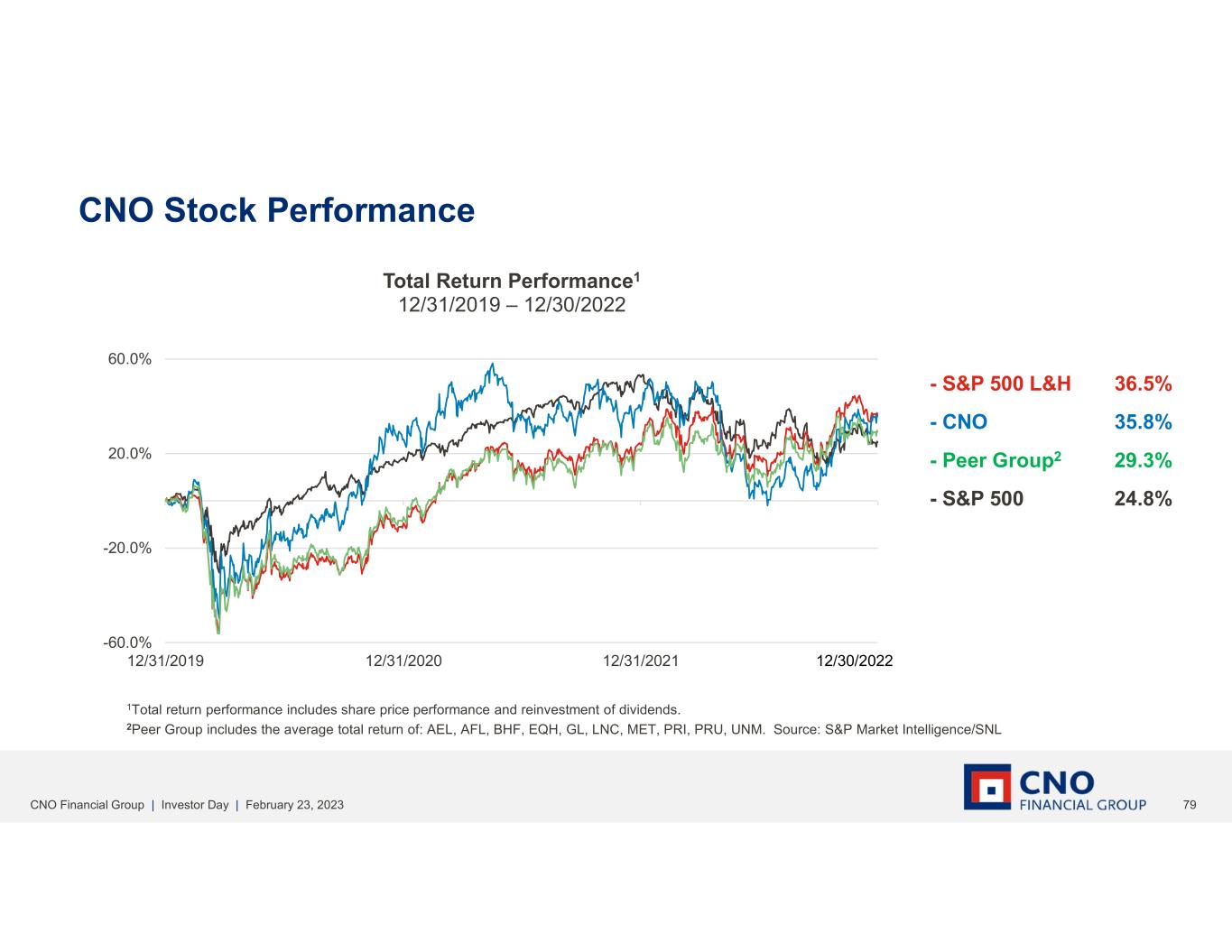CNO Financial Group | Investor Day | February 23, 2023 78 Why Invest in CNO Exclusive focus on underserved middle market Favorable demographic tailwinds Diverse and integrated “last mile” virtual and in-person model Sustainable growth initiatives in place Strong balance sheet and solid free cash flow generation