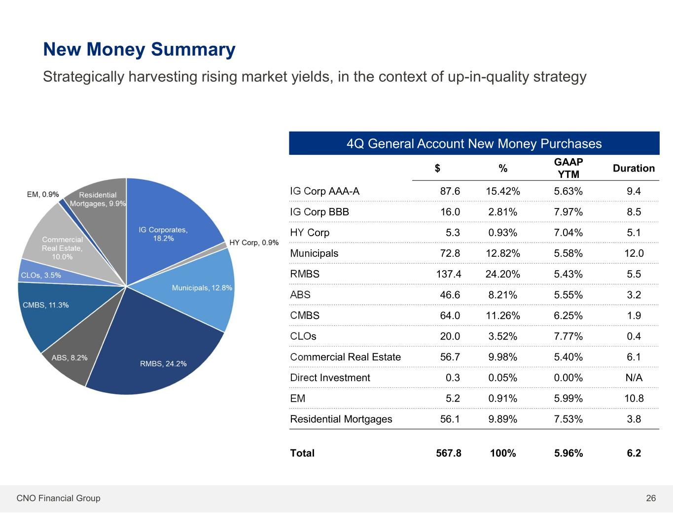 CNO Financial Group 25 Significant NMR increase reflects higher market yields New Money Rate Walk 5.36% 5.96% 0.32% 0.08% 0.20% 0.00%