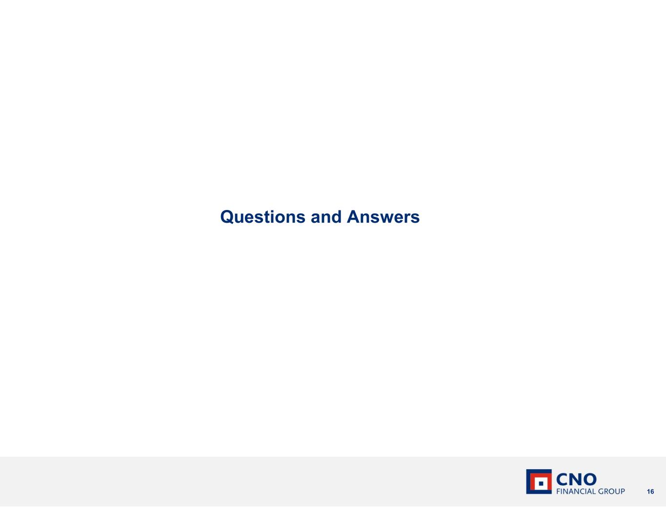 15 4 5 3 2 1 Exclusive focus on underserved middle-income market Significant demographic tailwinds Diverse and integrated "last mile" virtual and in-person model Sustainable growth initiatives in place Strong balance sheet and solid free cash flow generation WHY INVEST IN CNO
