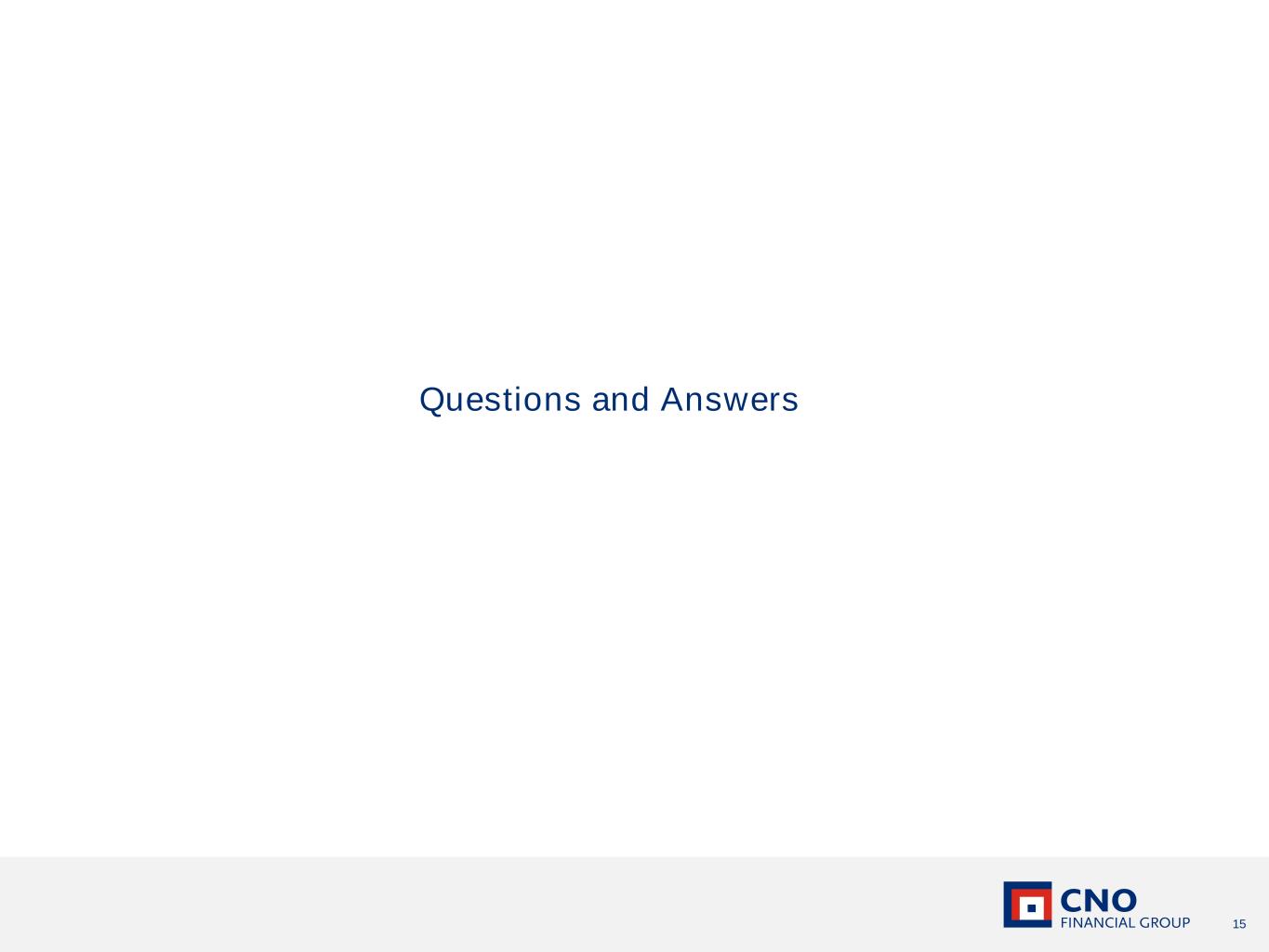 14 4 5 3 2 1 Exclusive focus on underserved middle-income market Significant demographic tailwinds Diverse and integrated "last mile" in-person and virtual model Delivering growth while improving ROE Strong balance sheet and robust free cash flow resilient against market events WHY INVEST IN CNO 6 Track record of execution and delivering on our promises