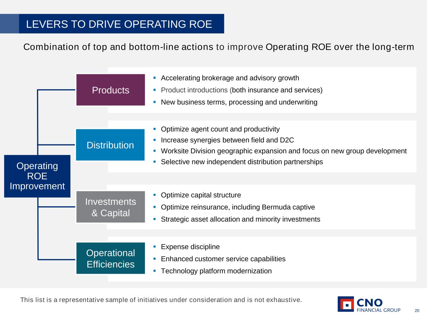 20 LEVERS TO DRIVE OPERATING ROE Combination of top and bottom-line actions to improve Operating ROE over the long-term ▪ Accelerating brokerage and advisory growth ▪ Product introductions (both insurance and services) ▪ New business terms, processing and underwriting ▪ Optimize agent count and productivity ▪ Increase synergies between field and D2C ▪ Worksite Division geographic expansion and focus on new group development ▪ Selective new independent distribution partnerships ▪ Optimize capital structure ▪ Optimize reinsurance, including Bermuda captive ▪ Strategic asset allocation and minority investments ▪ Expense discipline ▪ Enhanced customer service capabilities ▪ Technology platform modernization Products Distribution Investments & Capital Operational Efficiencies Operating ROE Improvement This list is a representative sample of initiatives under consideration and is not exhaustive.