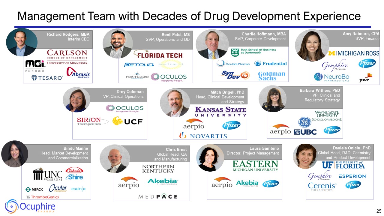 Restore Vision & Clarity  www.ocuphire.com ir@ocuphire.com  Ocuphire Pharma  Appendix:  Team and Nyxol Data  24