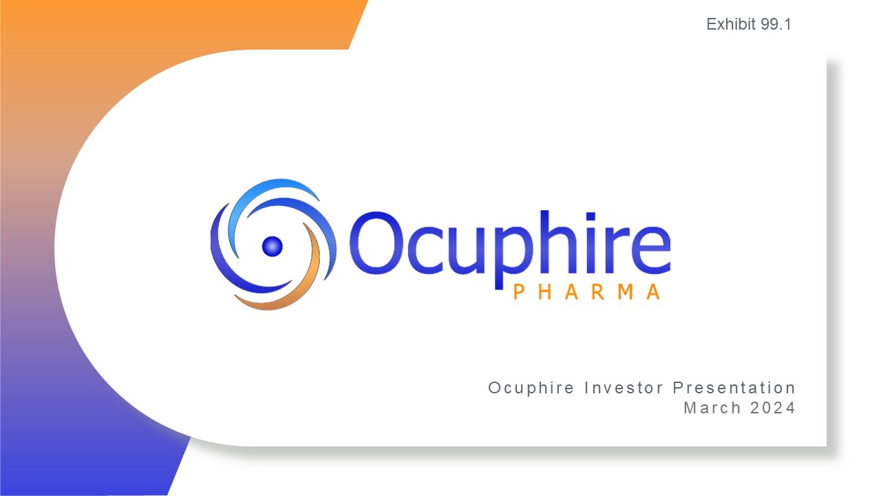 O c u p h i r e I n v e s t o r P r e s e n t a t i o n  M a r c h 2 0 2 4  Exhibit 99.1