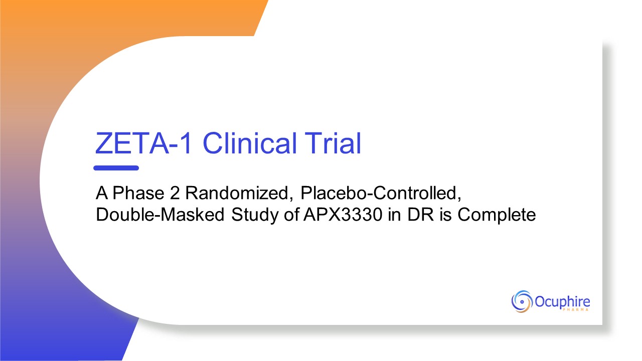ZETA-1 Clinical Trial  A Phase 2 Randomized, Placebo-Controlled,  Double-Masked Study of APX3330 in DR is Complete