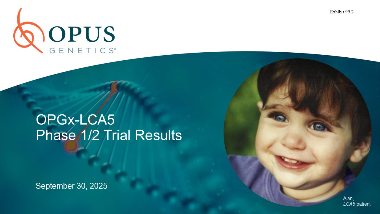 OPGx-LCA5 Phase 1/2 Trial Results  September 30, 2025  Alan,LCA5 patient  Exhibit 99.2