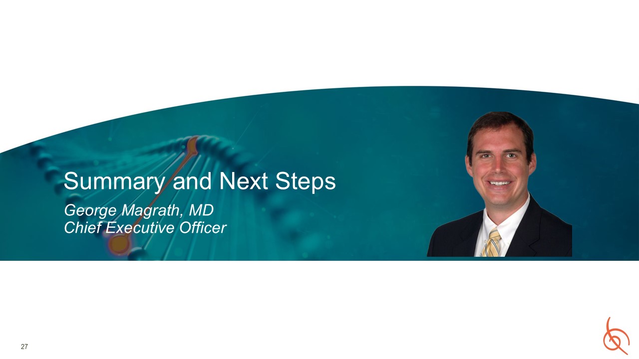 27  Summary and Next StepsGeorge Magrath, MDChief Executive Officer  27