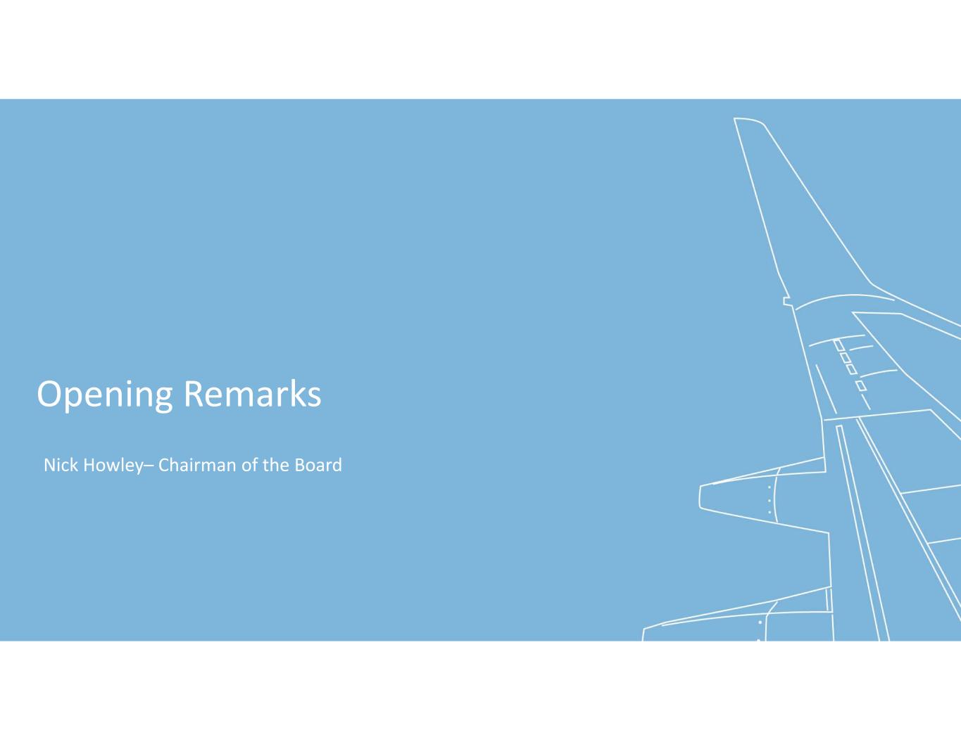Opening Remarks Nick Howley– Chairman of the Board