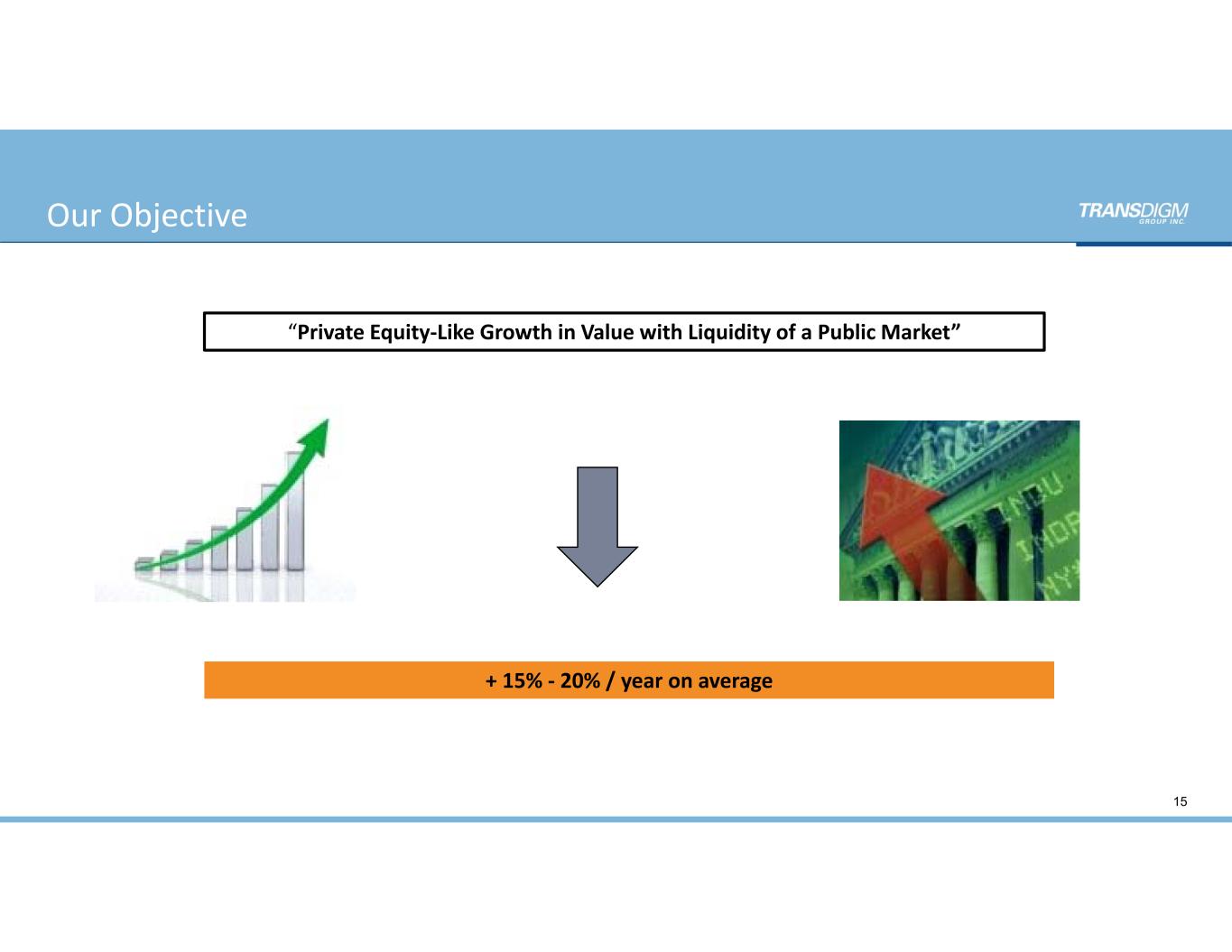 “Private Equity‐Like Growth in Value with Liquidity of a Public Market” + 15% ‐ 20% / year on average Our Objective 15