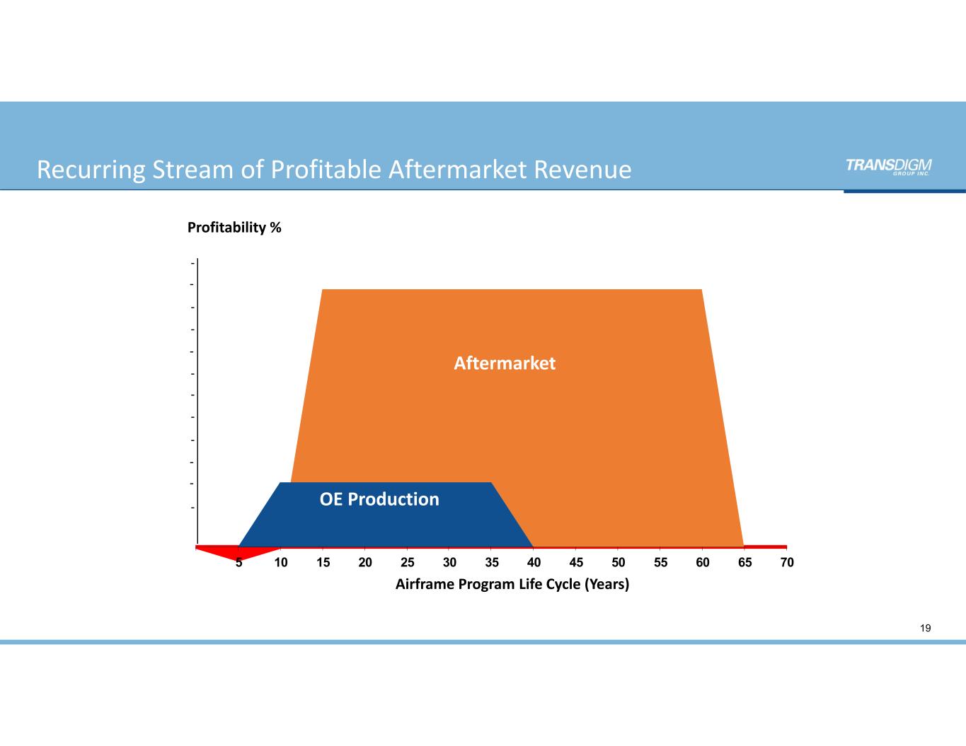 Recurring Stream of Profitable Aftermarket Revenue 5 10 15 20 25 30 35 40 45 50 55 60 65 70 Profitability % Airframe Program Life Cycle (Years) Aftermarket OE Production 19