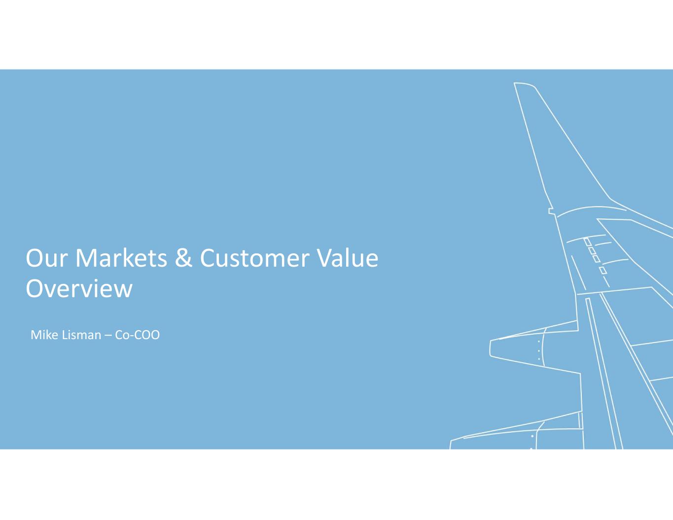 Our Markets & Customer Value  Overview Mike Lisman – Co‐COO