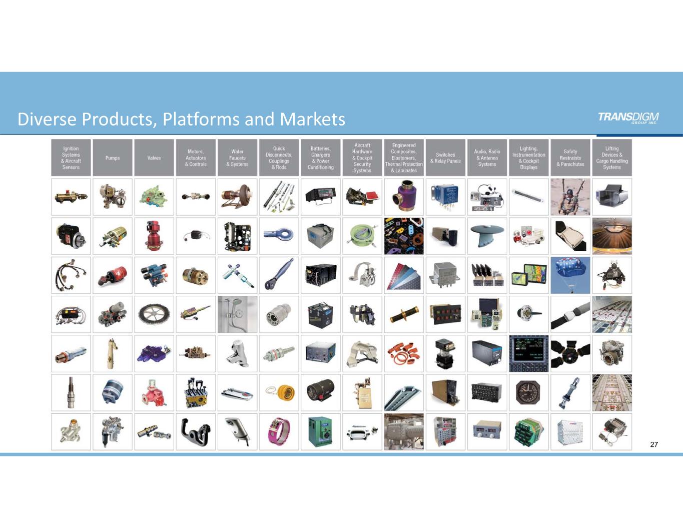 TDG Organization 26 Kevin Stein President & CEO Mike Lisman Co-COO Joel Reiss Co-COO Jes Warren General Counsel Sarah Wynne CFO Scalable Organization Structure EVP 6-7 Op Units EVP 6-7 Op Units EVP 6-7 Op Units EVP 6-7 Op Units EVP 6-7 Op Units EVP 6-7 Op Units EVP 6-7 Op Units