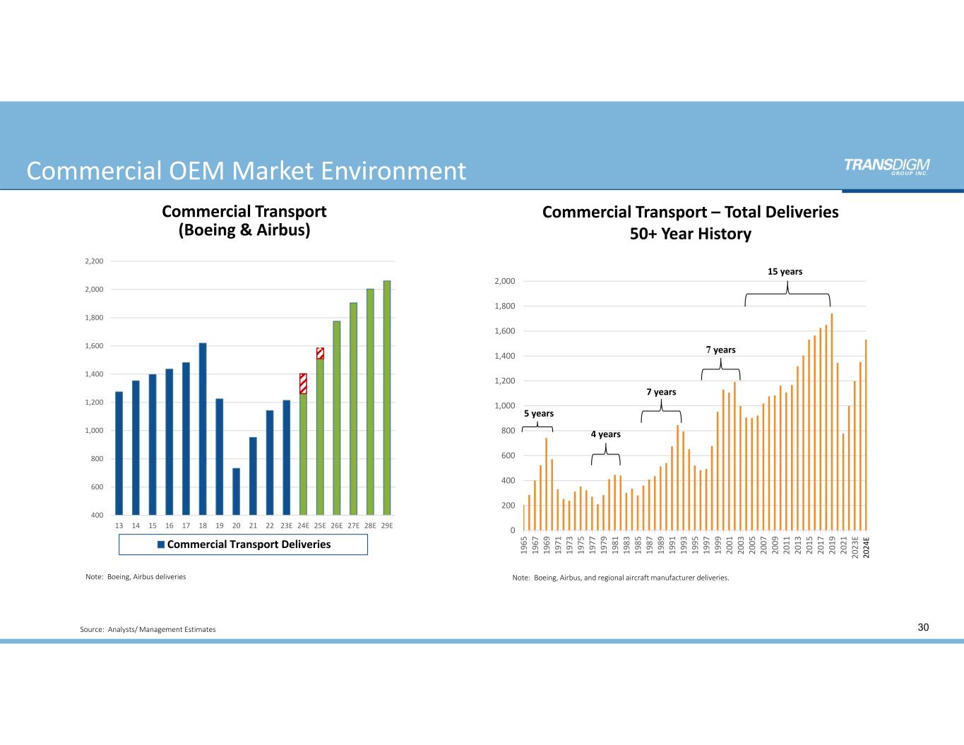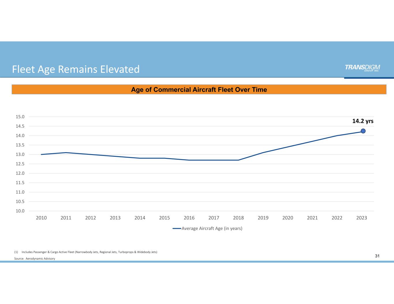 Commercial OEM Market Environment 30 Commercial Transport (Boeing & Airbus) Source:  Analysts/ Management Estimates Commercial Transport – Total Deliveries 50+ Year History 400 600 800 1,000 1,200 1,400 1,600 1,800 2,000 2,200 13 14 15 16 17 18 19 20 21 22 23E 24E 25E 26E 27E 28E 29E Commercial Transport Deliveries 0 200 400 600 800 1,000 1,200 1,400 1,600 1,800 2,000 19 65 19 67 19 69 19 71 19 73 19 75 19 77 19 79 19 81 19 83 19 85 19 87 19 89 19 91 19 93 19 95 19 97 19 99 20 01 20 03 20 05 20 07 20 09 20 11 20 13 20 15 20 17 20 19 20 21 20 23 E 4 years 7 years 5 years 7 years 20 24 E 15 years  ` Note:  Boeing, Airbus, and regional aircraft manufacturer deliveries. Note:  Boeing, Airbus deliveries `