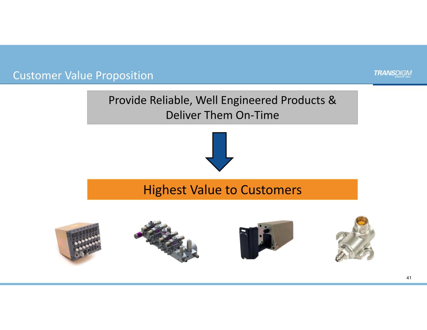 Customer Value Proposition 41 Highest Value to Customers Provide Reliable, Well Engineered Products &  Deliver Them On‐Time 41