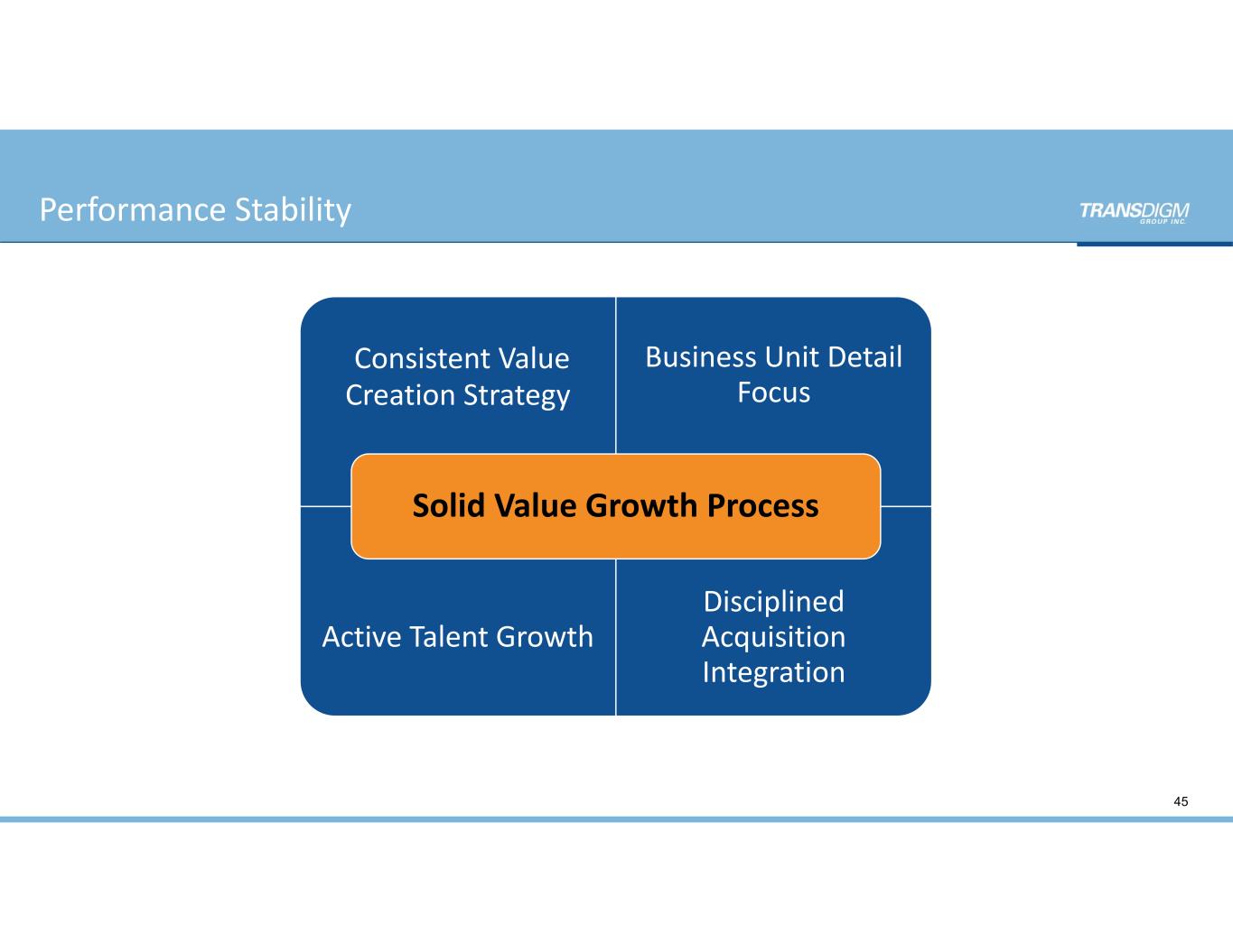  Consistent Value Creation Strategy  Product Line Detail Focus  Active Talent Growth  Disciplined Acquisition Integration Performance Stability Consistent Value  Creati  Strategy Business Unit Detail  Focus Active Talent Growth Disciplined  Acquisition  Integration Solid Value Growth Process 45