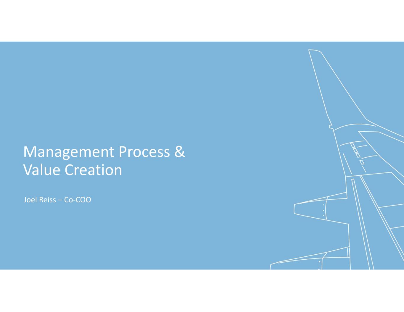 Management Process &  Value Creation Joel Reiss – Co‐COO