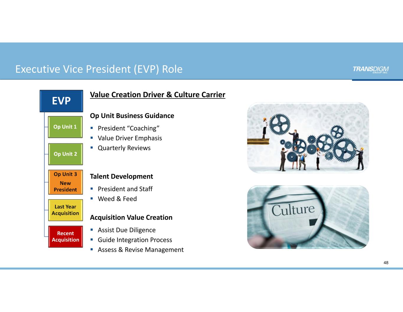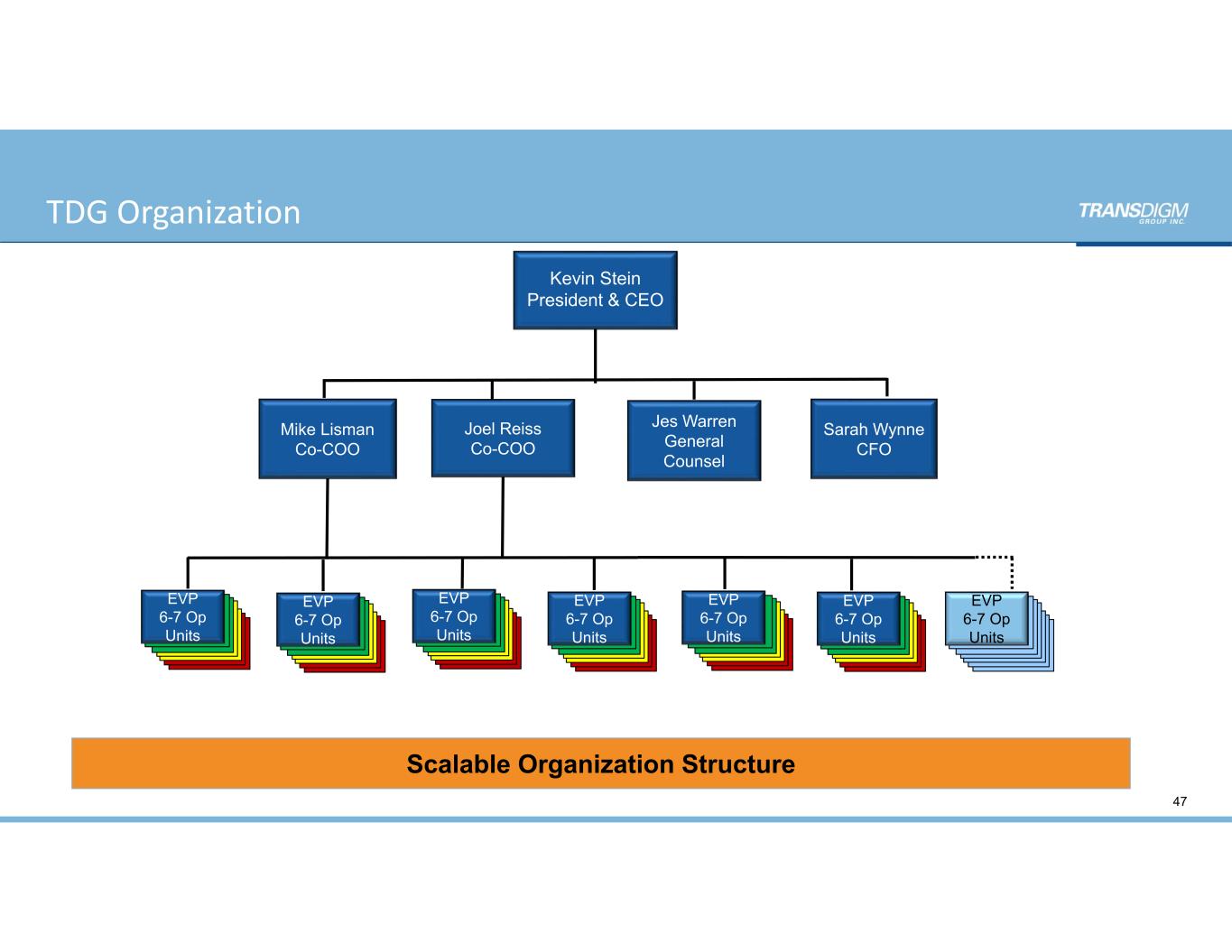 47 Kevin Stein President & CEO Mike Lisman Co-COO Joel Reiss Co-COO Jes Warren General Counsel Sarah Wynne CFO Scalable Organization Structure EVP 6-7 Op Units EVP 6-7 Op Units EVP 6-7 Op Units EVP 6-7 Op Units EVP 6-7 Op Units EVP 6-7 Op Units EVP 6-7 Op Units TDG Organization