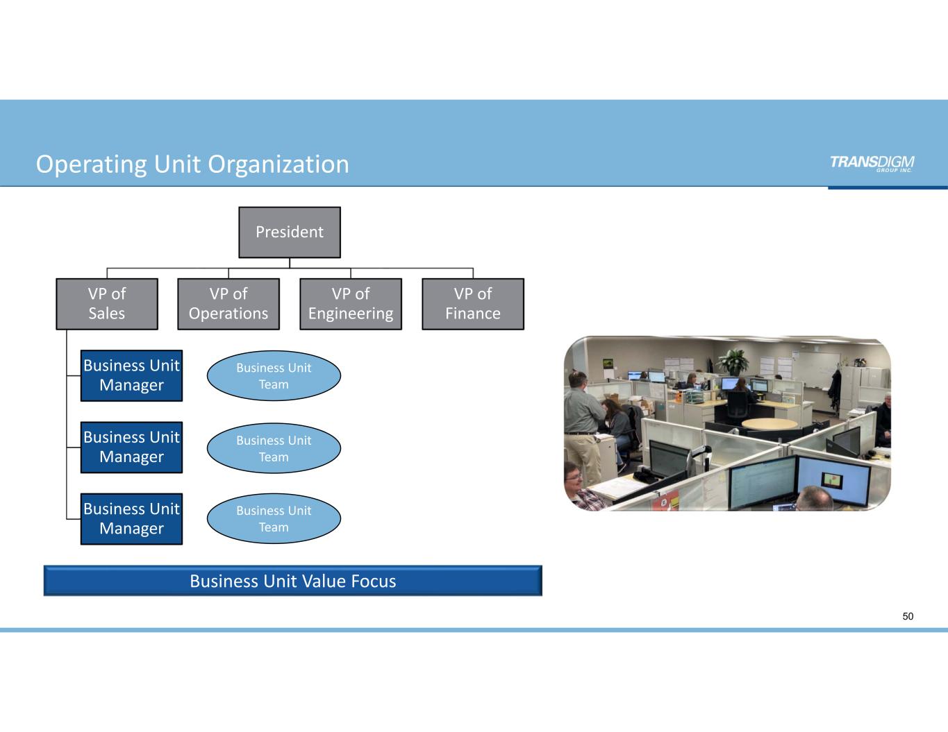 President VP of     Sales Business Unit  Manager Business Unit  Manager Business Unit  Manager VP of  Operations VP of  Engineering VP of   Finance Business Unit  Team Business Unit  Team Business Unit  Team Business Unit Value Focus 50 Operating Unit Organization