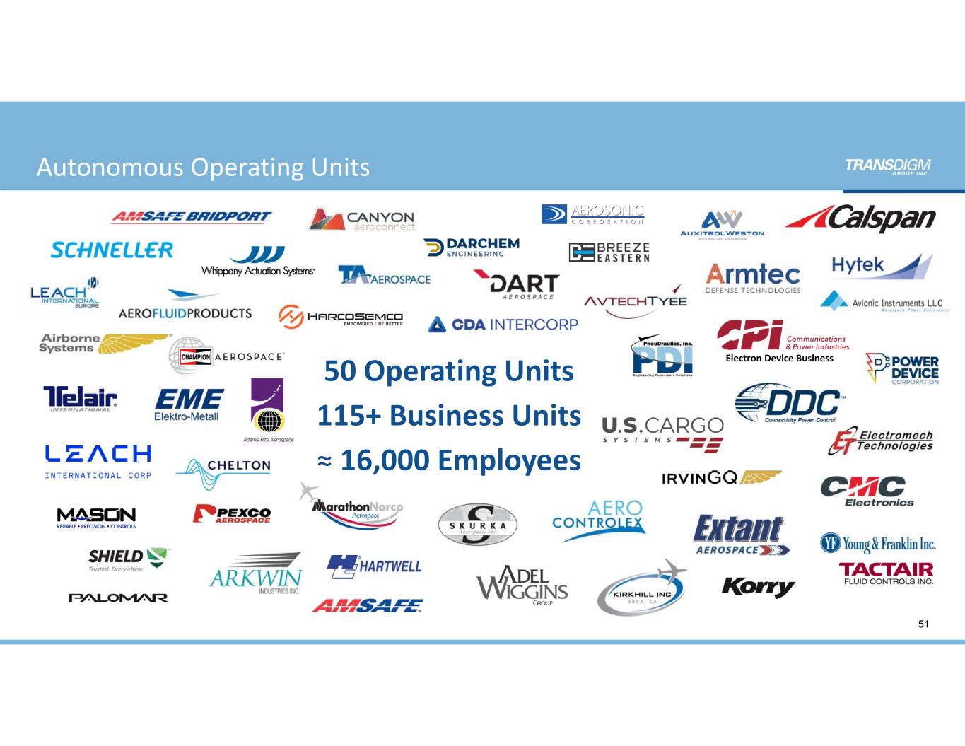 50 Operating Units 115+ Business Units ≈ 16,000 Employees 51 Autonomous Operating Units Electron Device Business