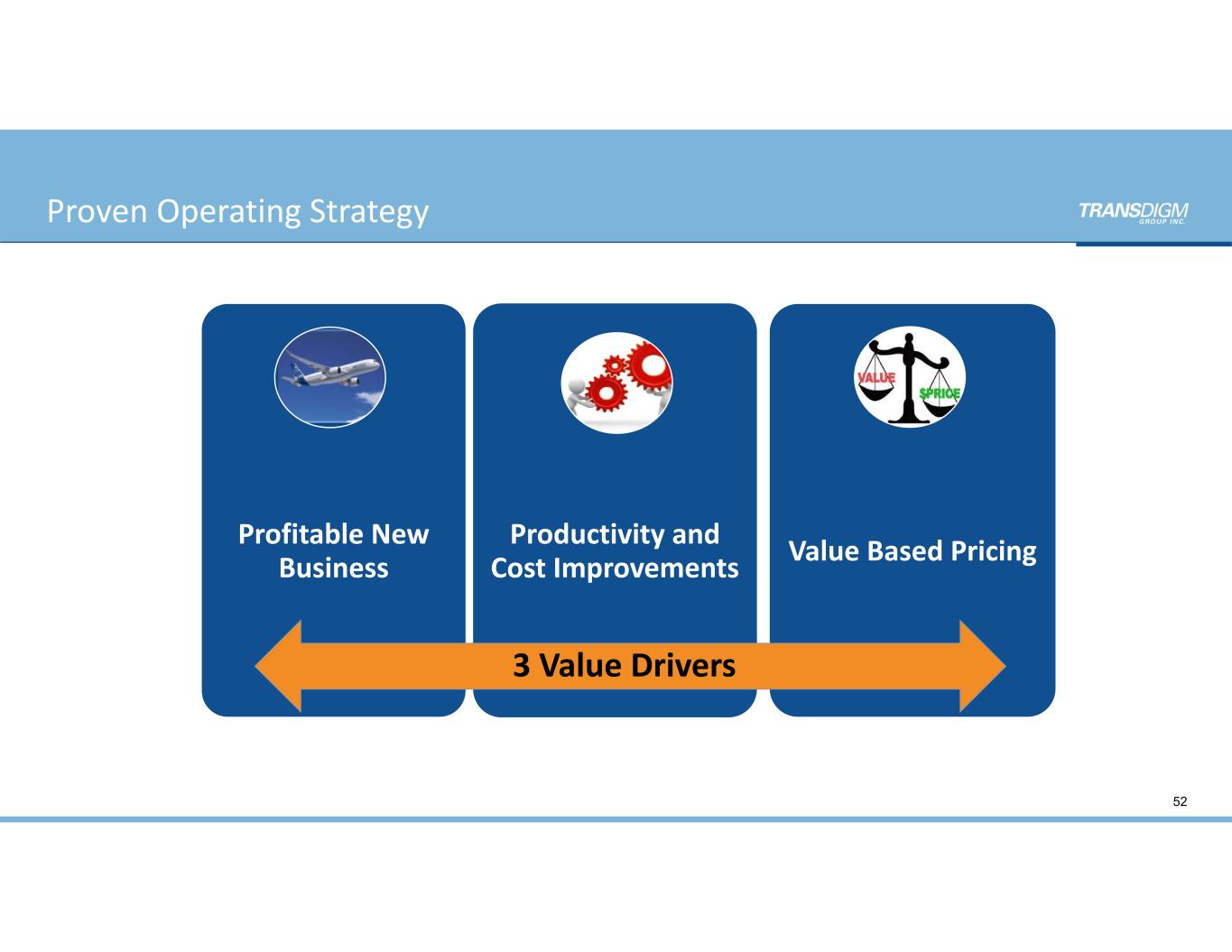 Profitable New  Business Productivity and  Cost Improvements Value Based Pricing 3 Value Drivers Proven Operating Strategy 52