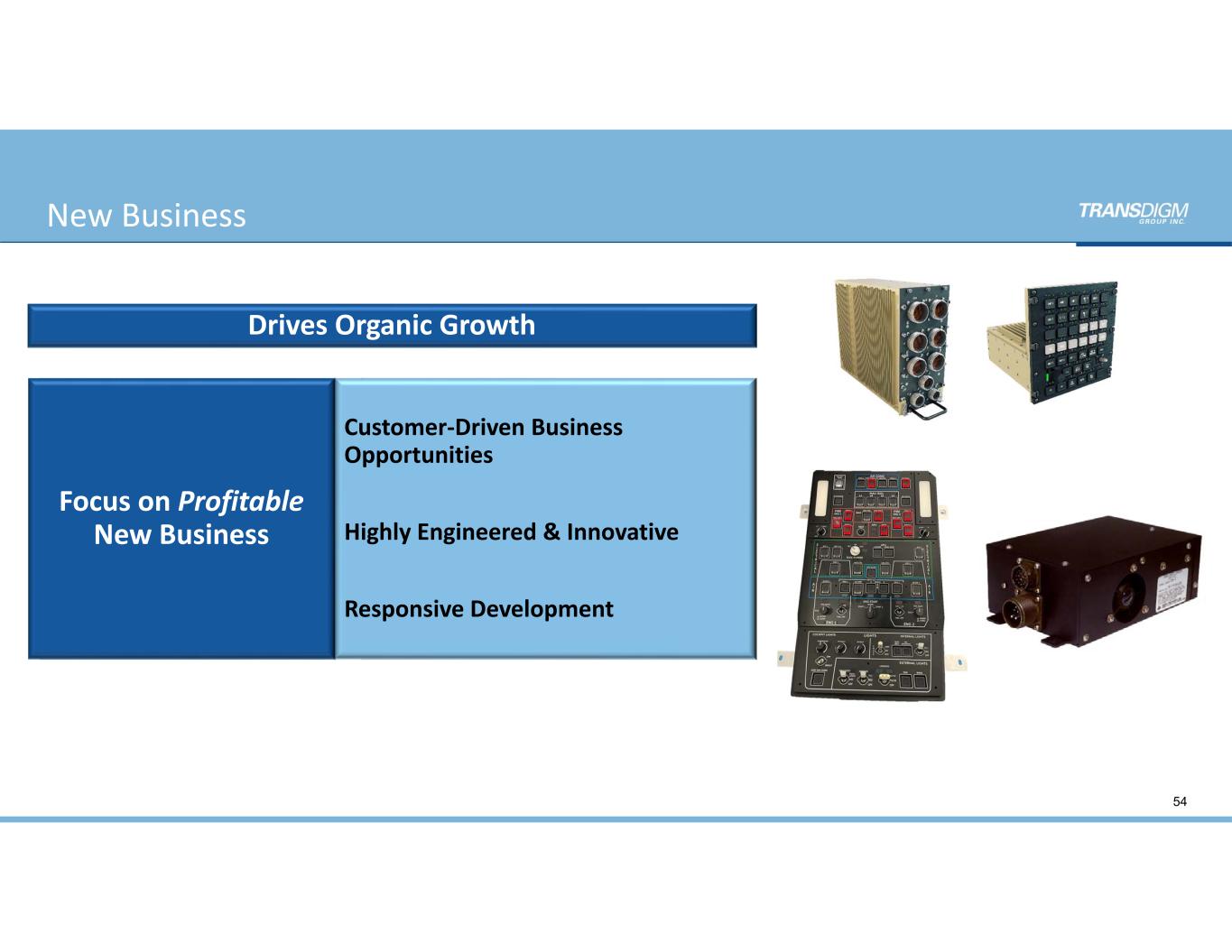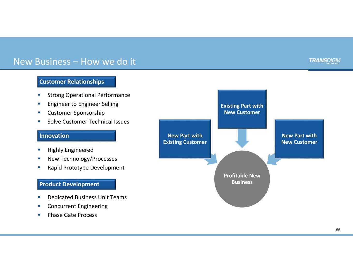 Drives Organic Growth  Focus on Profitable  New Business Customer‐Driven Business  Opportunities Highly Engineered & Innovative Responsive Development 54 New Business