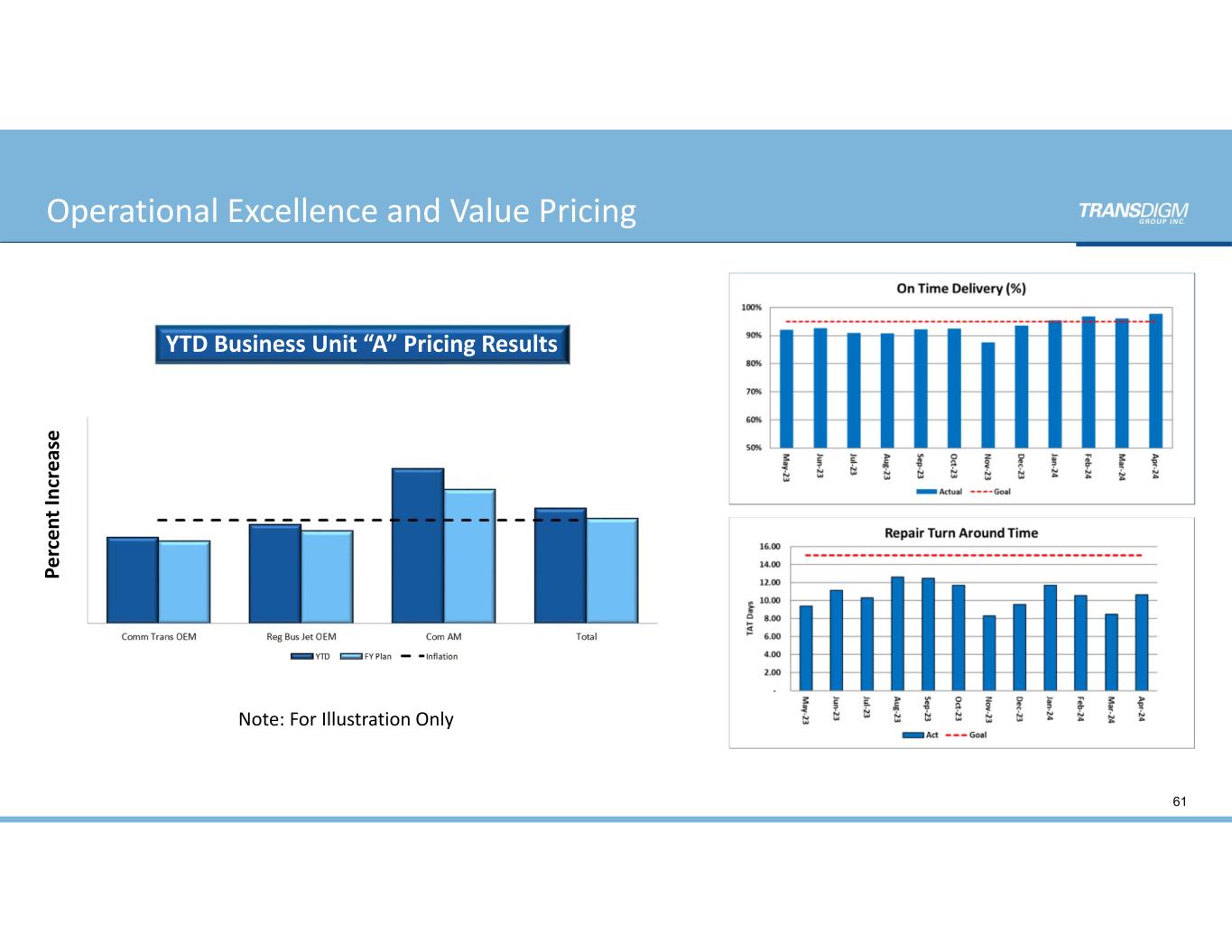 Pe rc en t I nc re as e YTD Business Unit “A” Pricing Results Note: For Illustration Only 61 Operational Excellence and Value Pricing