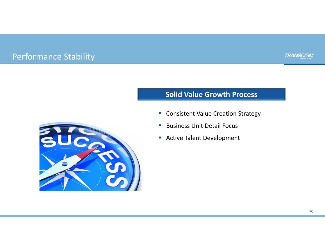  Consistent Value Creation Strategy  Business Unit Detail Focus  Active Talent Development Solid Value Growth Process 70 Performance Stability
