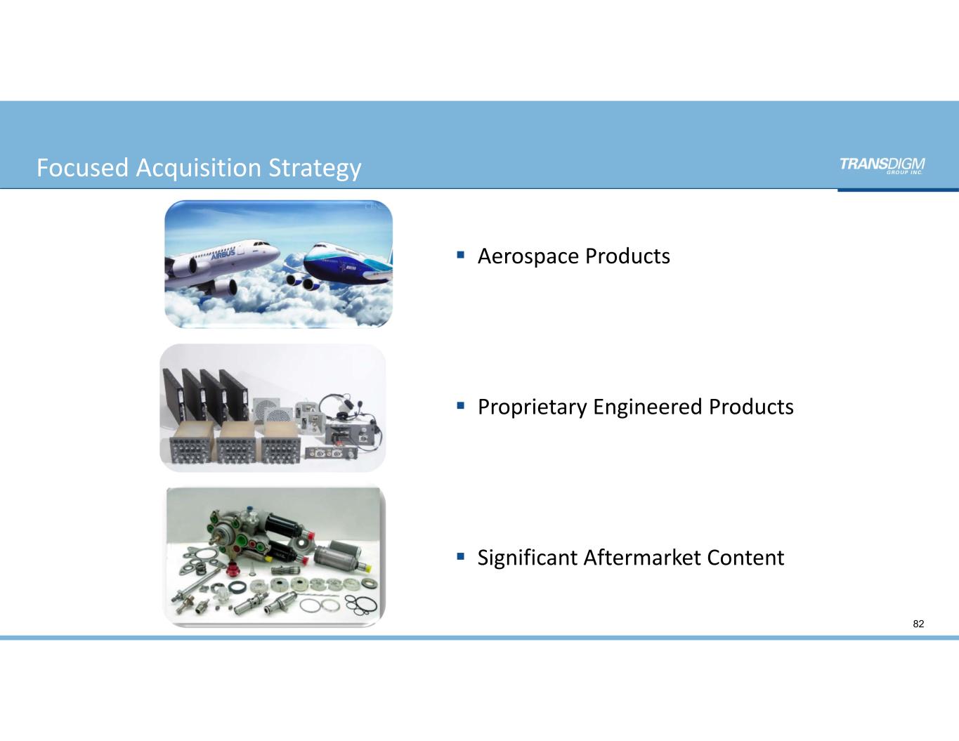 Focused Acquisition Strategy 82  Aerospace Products  Proprietary Engineered Products  Significant Aftermarket Content