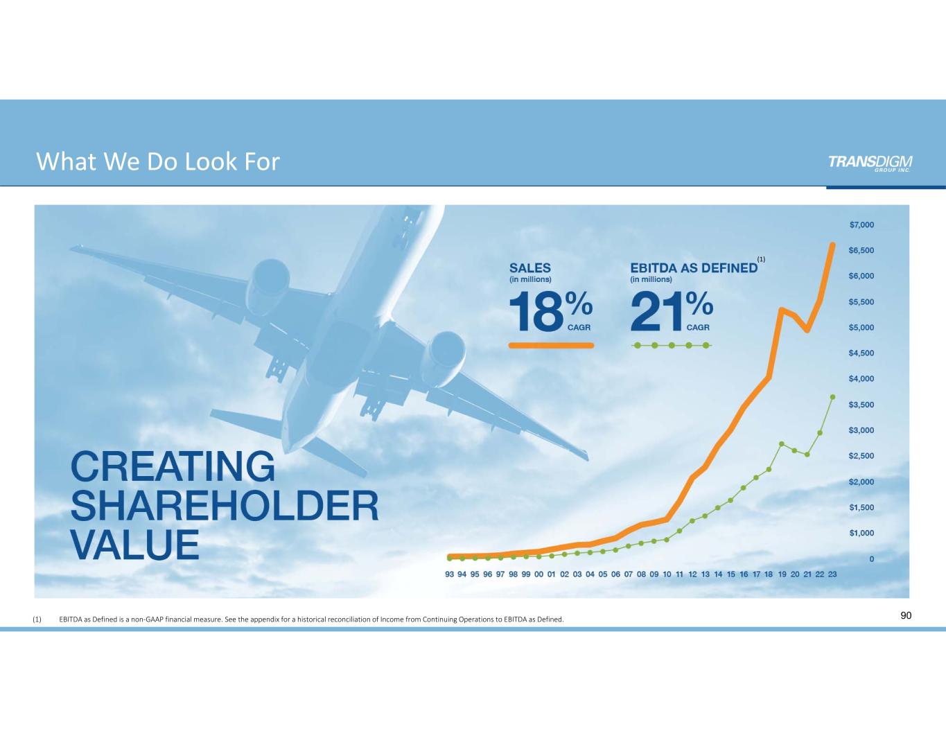 What We Do Look For 90 (1) (1) EBITDA as Defined is a non‐GAAP financial measure. See the appendix for a historical reconciliation of Income from Continuing Operations to EBITDA as Defined.
