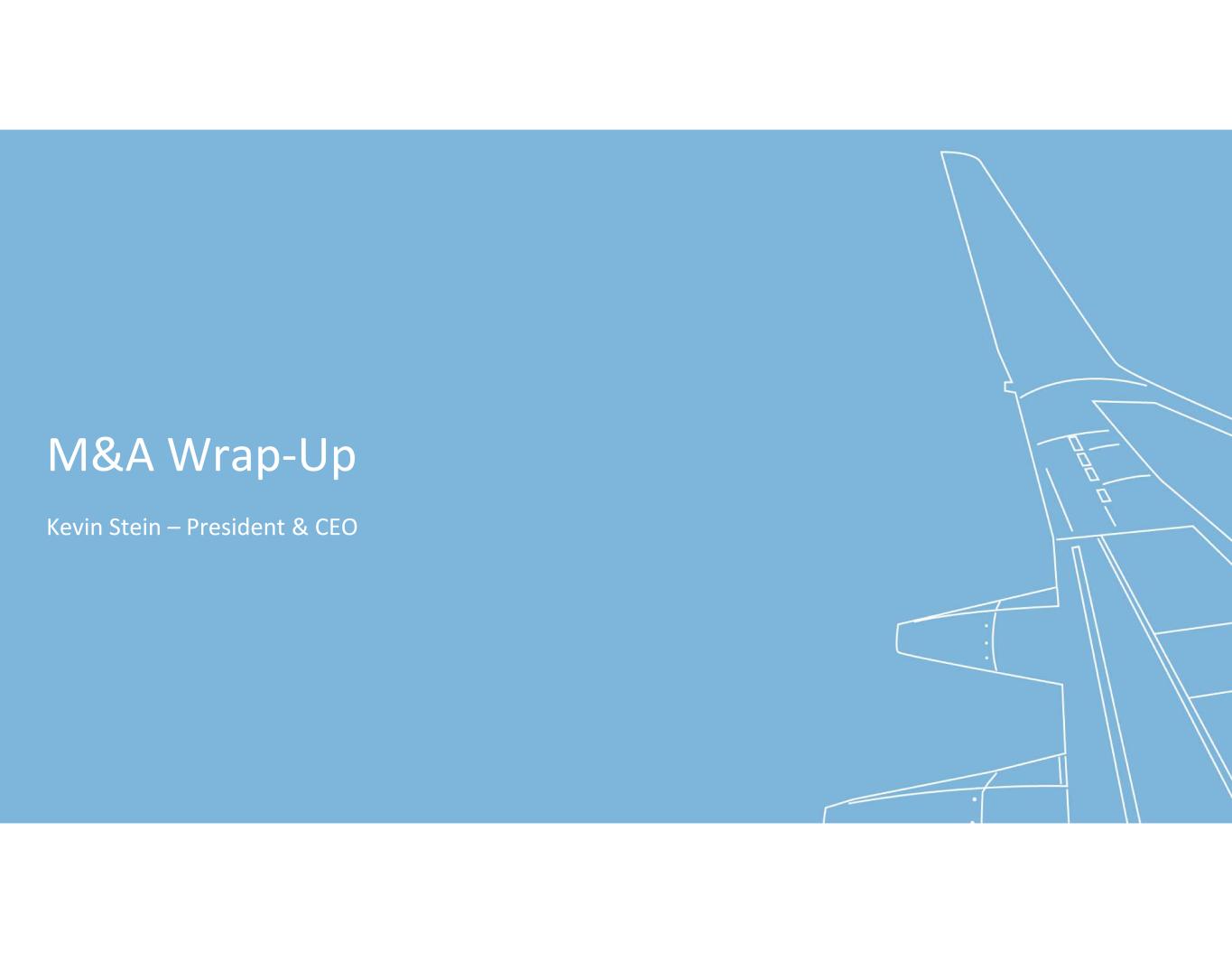 M&A Wrap‐Up  Kevin Stein – President & CEO